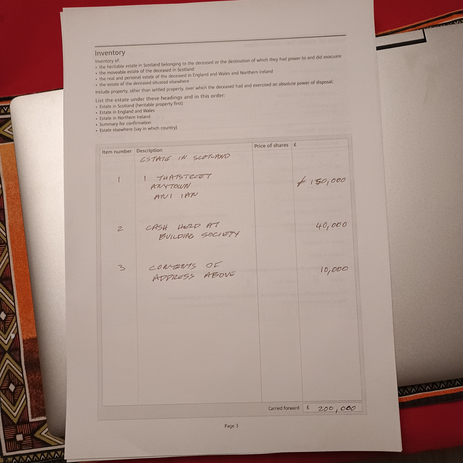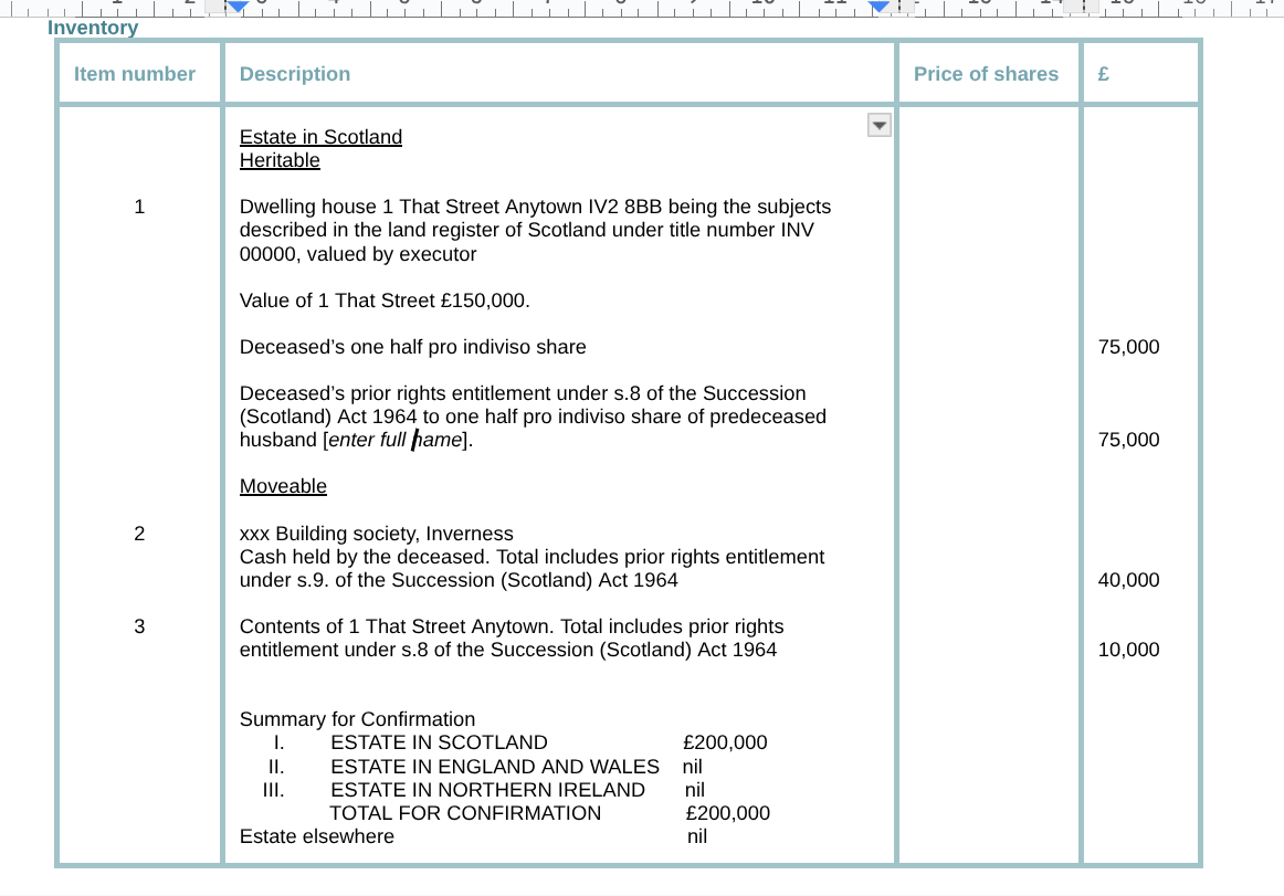 I have assumed that you have access to the cash account and a fuller description is not necessary in the inventory. It is acceptable to list the building society entry under moveable estate in Scotland if it is a Scottish branch based account or the Building Society is registered in Scotland. Otherwise it might need to be listed under personal estate in England and Wales and the inventory amended accordingly.