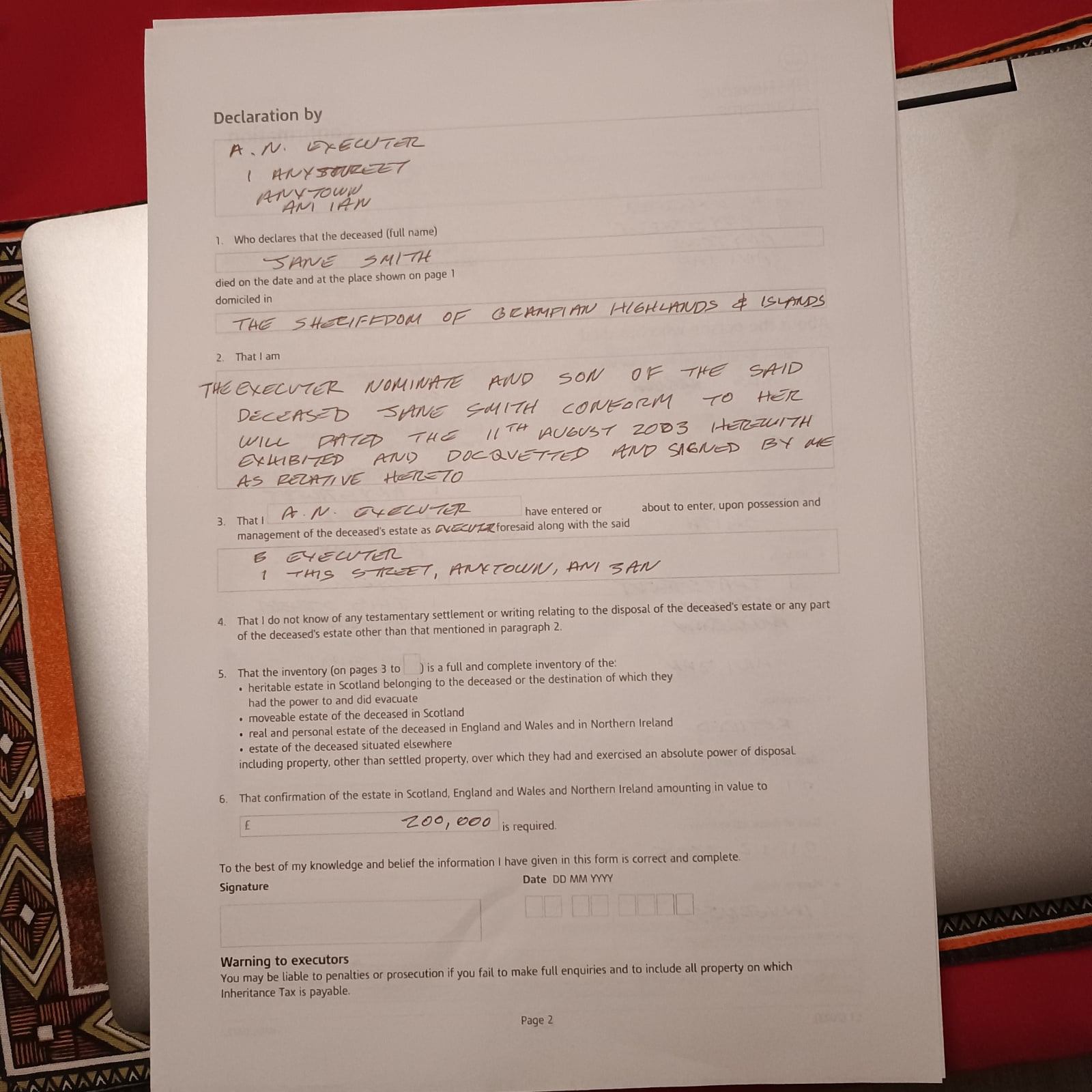 I have made some assumptions about what the solicitor might include in dad’s confirmation, given the long timescale here.