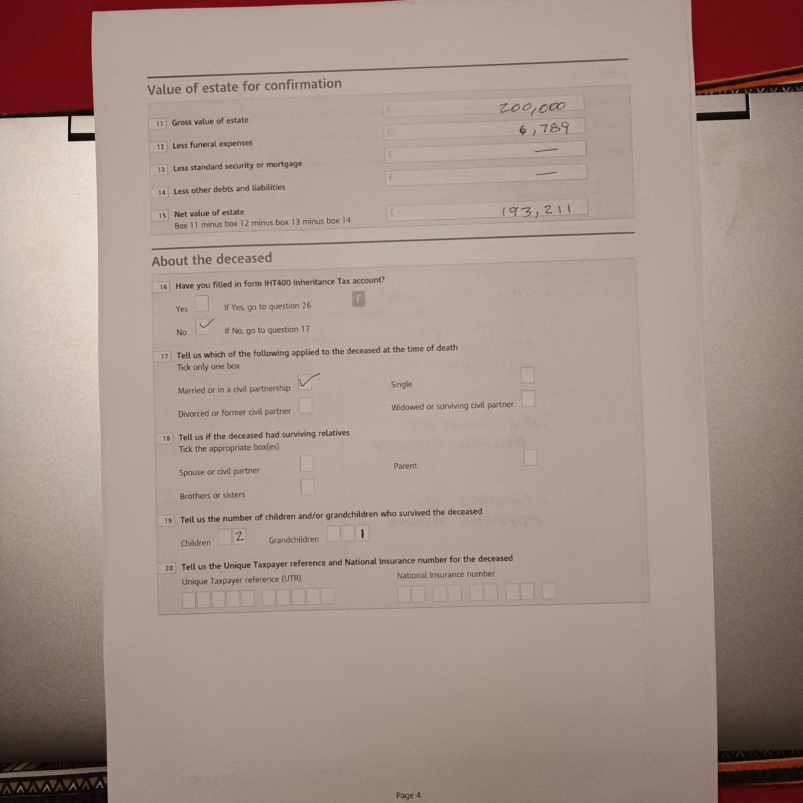 Box 17. Looks like the wrong box is ticked. Should ‘widowed’ be ticked?
