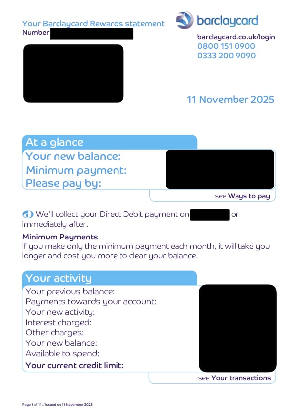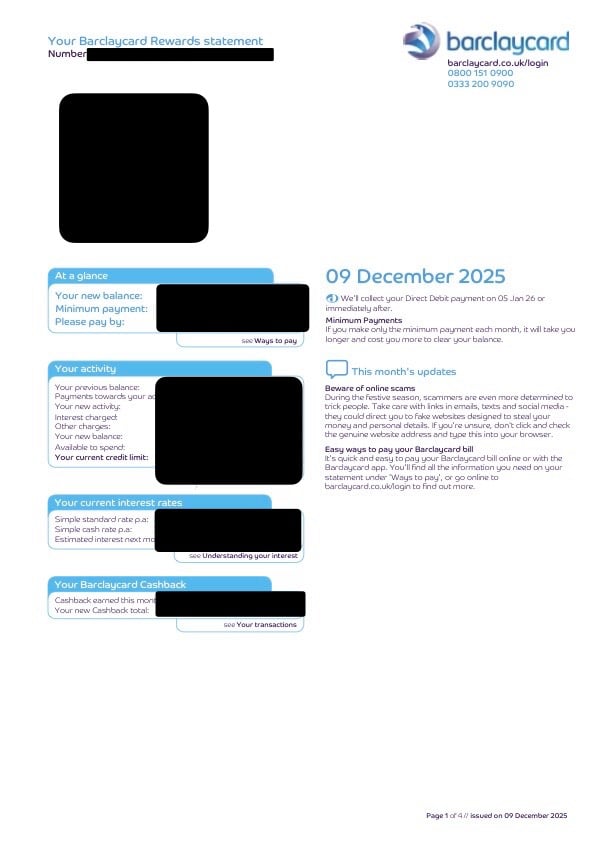 All devices and browsers are able to zoom in these days.northwalesd said:Can I ask why you want one large print but not the other?I have had Barclaycard Large print statement’s since 2021 & like layout & easier to read etc!Sadly Barclays don’t off colour large print statements just a booklet in black & white with large font for the transactions & details etc!sheenas said:You could use a pdf editor, but why? Changing a statement and sending it to someone else potentially could be considered fraudulent or change the context of the statement.I don’t want to use PDF editor (I blanked personal info out for this post to show the 2 different statement layouts) & I would never send my bank/credit card statements to anyone unless necessary but only official copies0 -