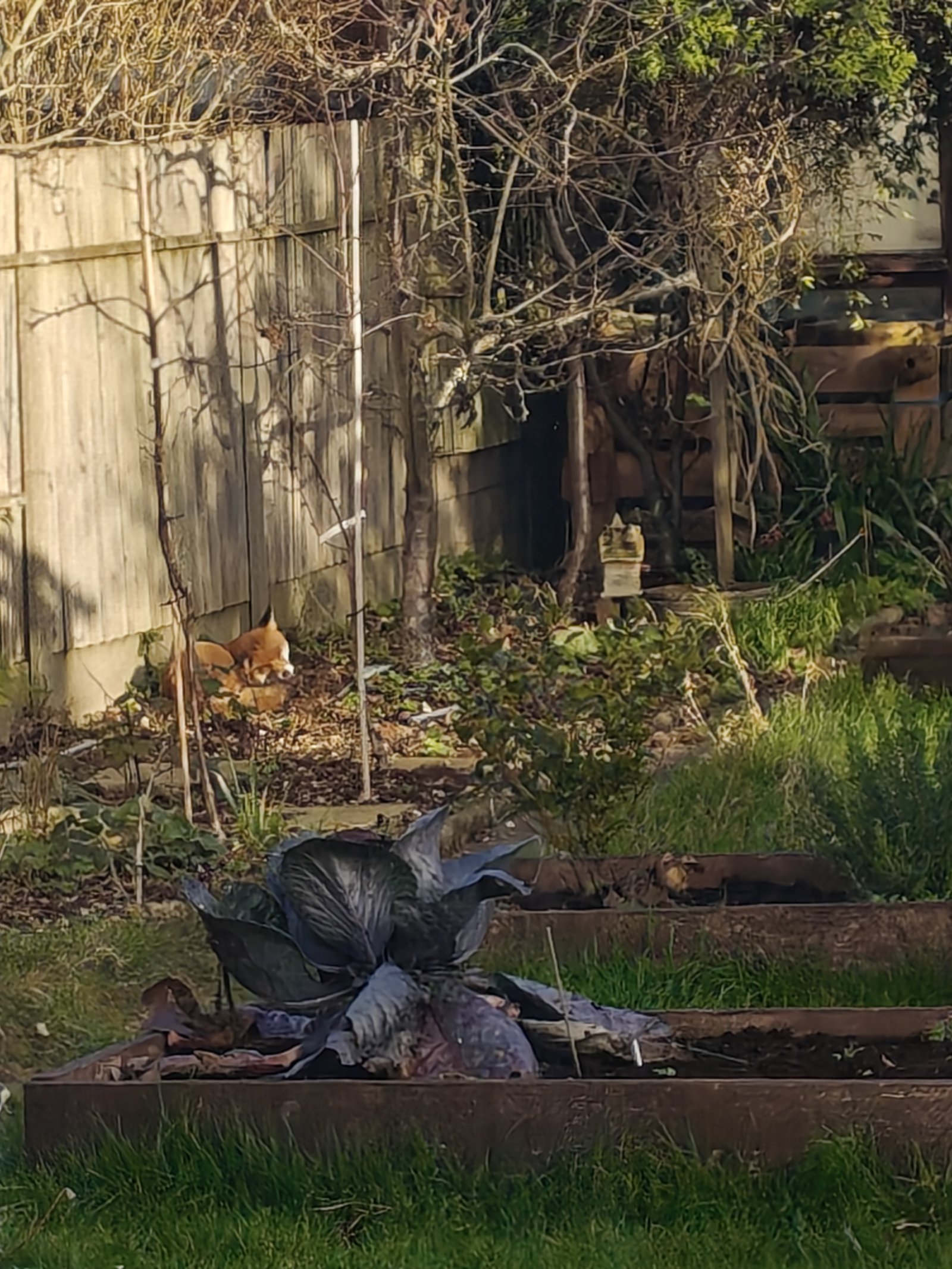 Ooo and to end on a more positive note, yesterday DS banged on the window to get my attention whilst he was out having a cig, there was a fox in the garden! It spent about three hours out there. I was concerned it was injured at first as thought they were nocturnal but upon investigation online it suggests they can and will come out during the day if they feel safe enough. It was laid under our broken bench for ages then as the sun came out it went and laid in my fruit bush patch and was sunbathing 🥰 so cute. It was a big one too, much bigger than my FLD used to be 😊.