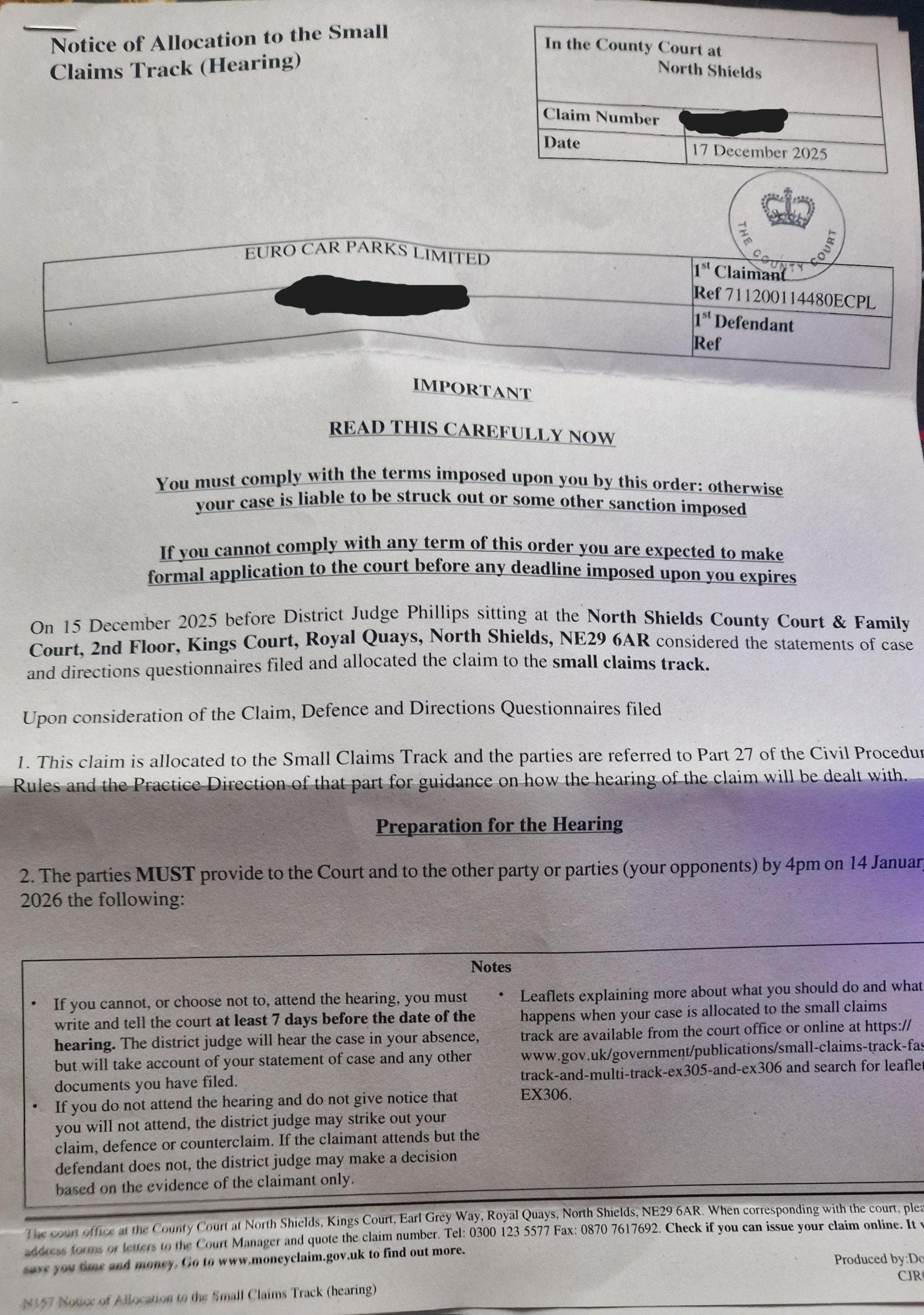 I am now asking for advice on the nest steps with telling Euro Car Parks Ltd to F off. I imagine they will not want to pay the £27 to risk losing and paying my court costs if they do. And I know I'm basically in a game of chicken with them and their so called legal representatives.