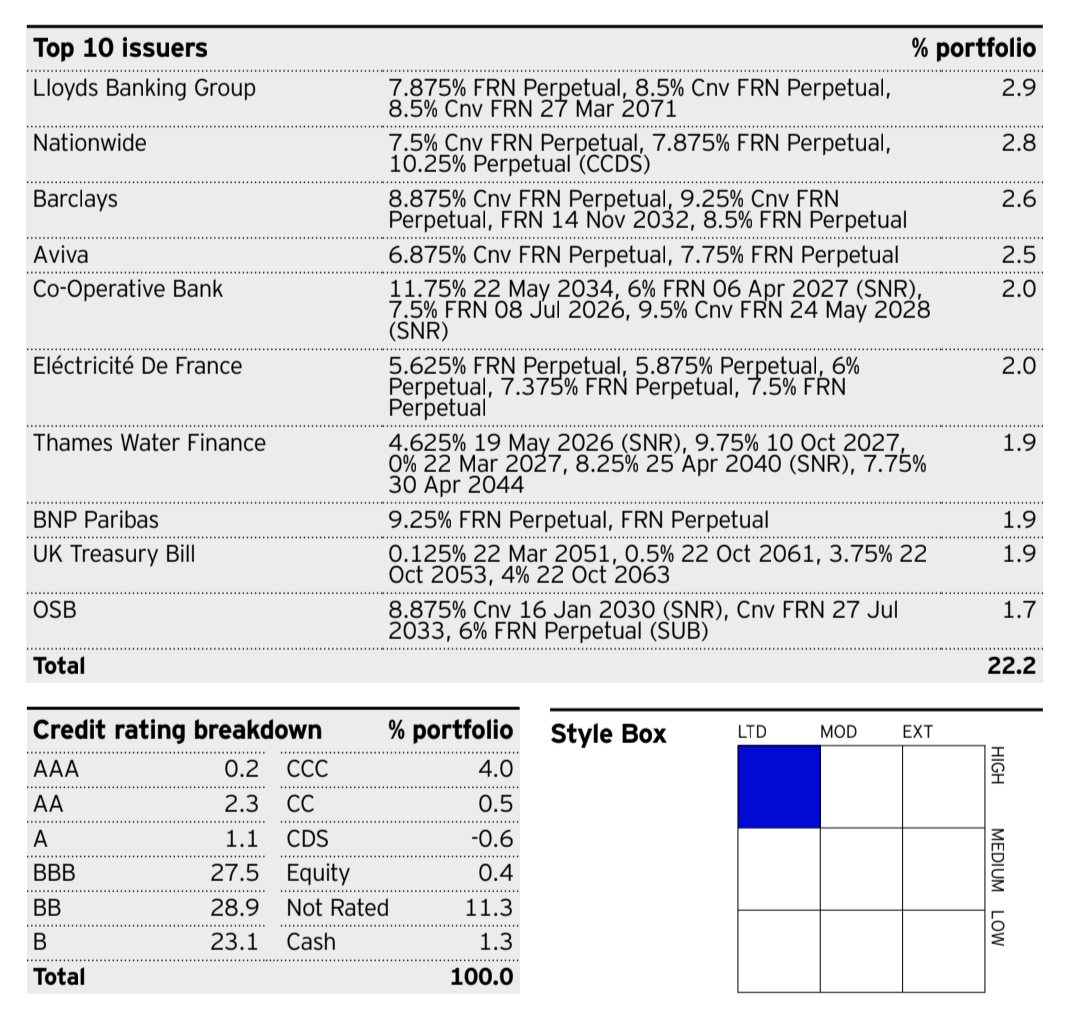 Having secure names fill most of the top ten spaces of a fund which is 70% junk looks, to me, like a bit of window dressing.