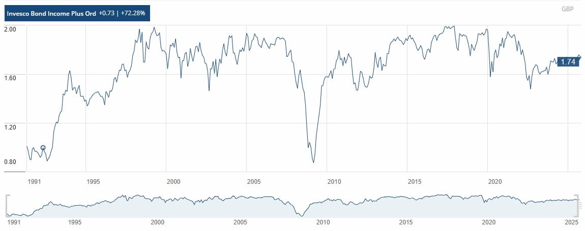 For me stable would be non-volatile and avoiding capital loss. Many funds did lose capital in 22 as a rare event, but things like junk bonds also lost capital at many other times as you can see from the chart. If you're now not actually concerned with volatility or capital loss then equities should also be in the picture since the trend line is also positive.dont_use_vistaprint said: