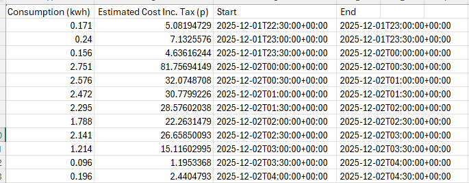 If it helps I downloaded the usage spreadsheets from Octopus, they also show that, day after day, for the first 30 minutes of every day that their charges are significantly higher that the next few 30 minutes periods.