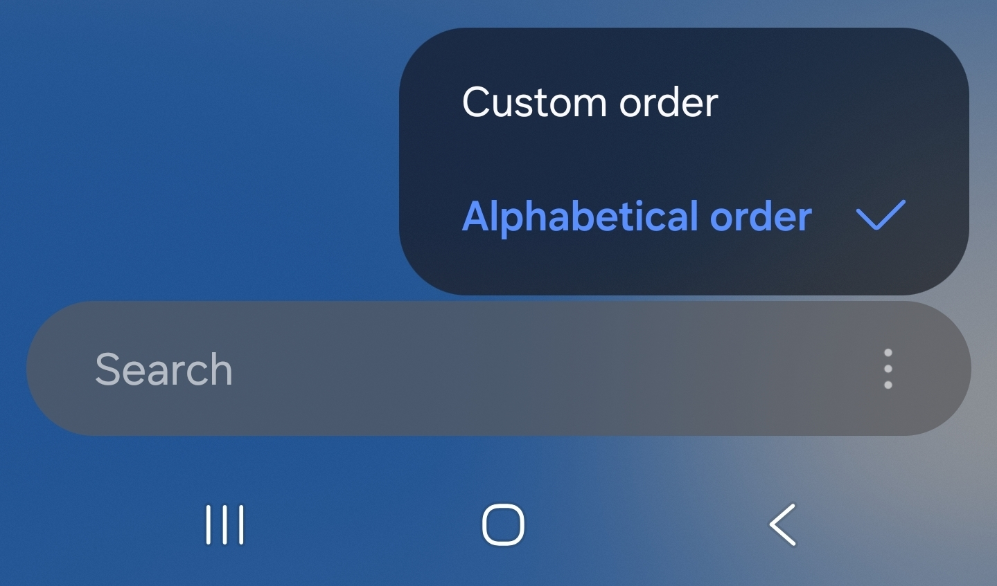 Had a look & I don't seem to have that.powerful_Rogue said:S25 Ultra here, so should be identical on your phone.In the app drawer, click on the three dots next to the search bar and select sort >> custom order.