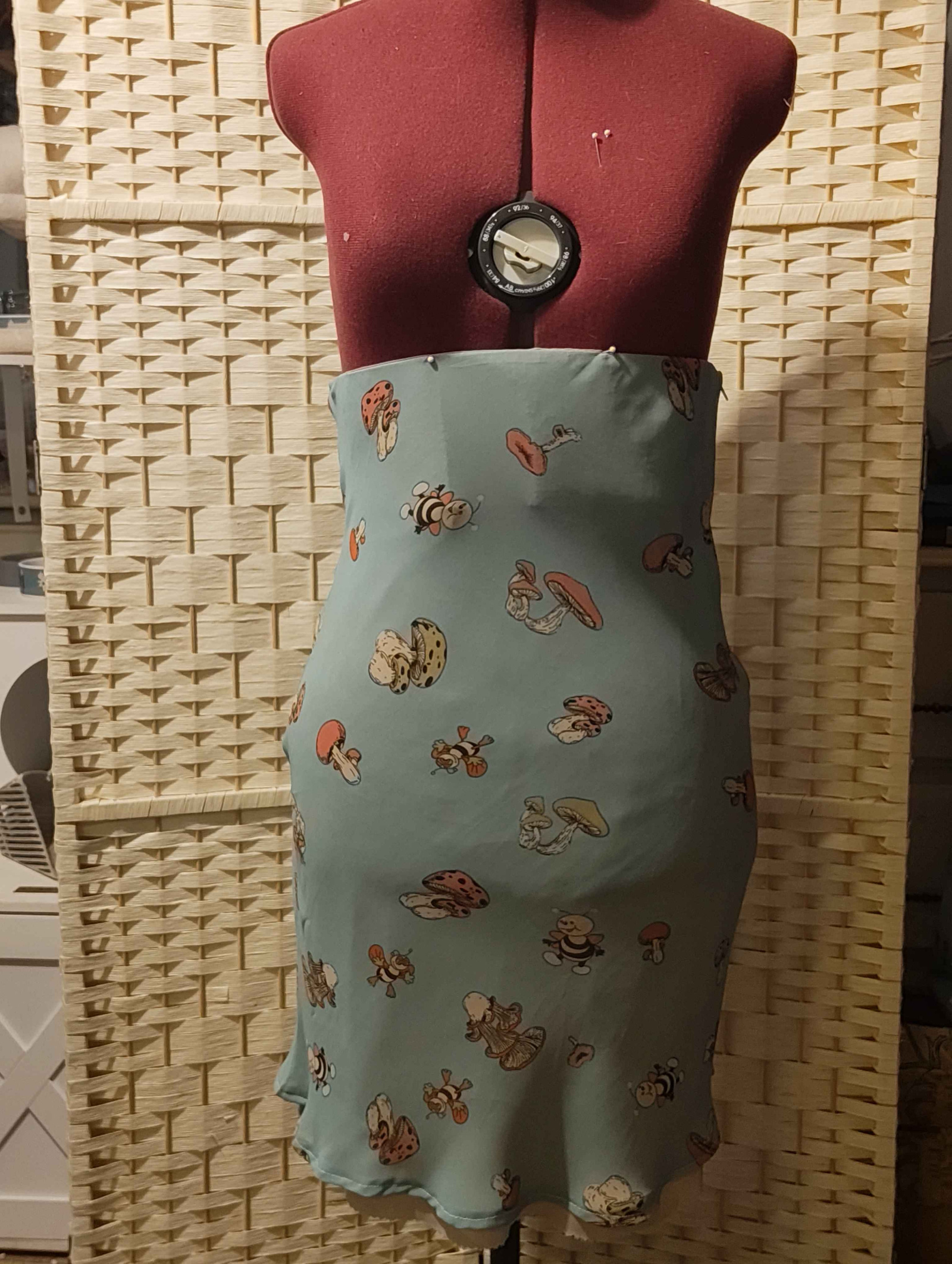 On the savings side, I have been distracting myself by using some of my fabric up and making myself a skirt. I just need to hem the lining now. It doesn't quite fall right, but it is my first time actually cutting on the bias.