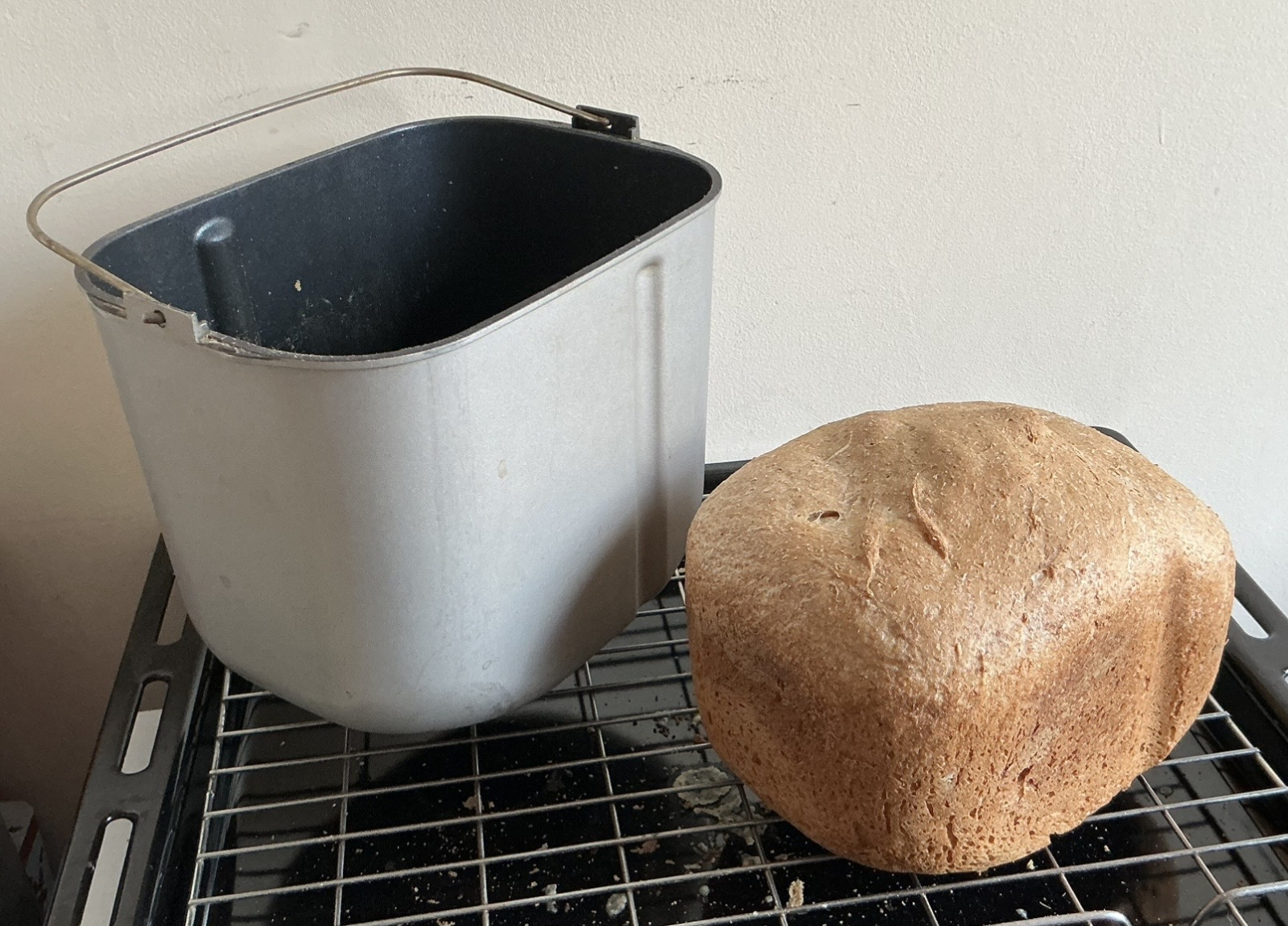 DH made a nice small loaf this morning, 50% wholemeal and white bread flours. He makes our daily kefir too.