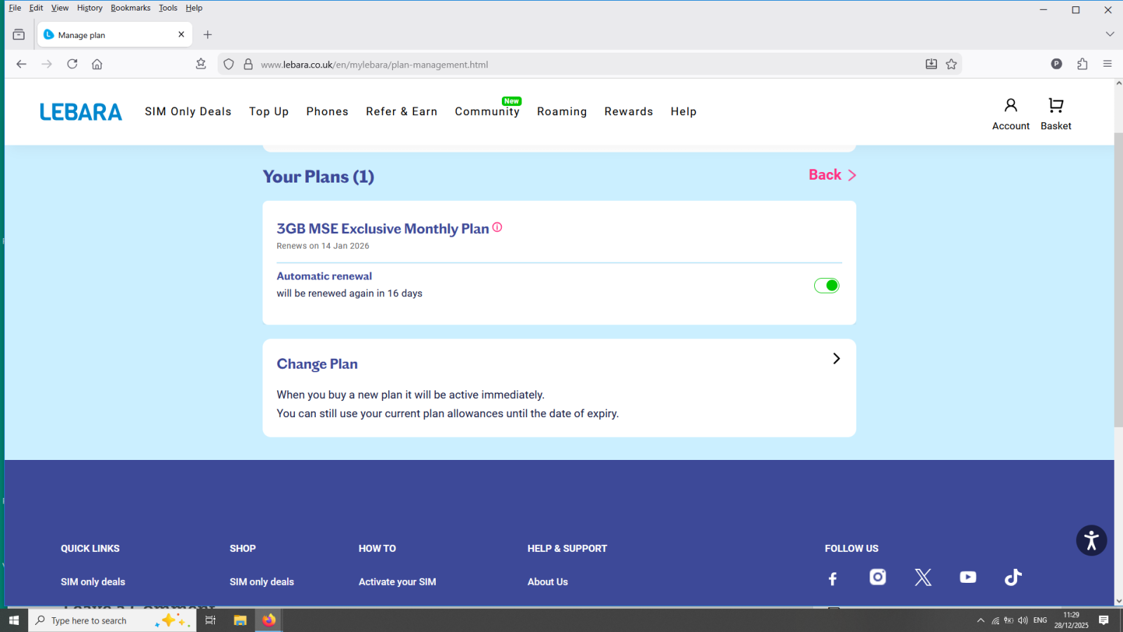 If it's a rolling 30 days deal and card payment, then auto renew may be tuned off in the Lebara account. Select "Manage".A 12 months contract, then contact them.O.P. needs to provide more information.