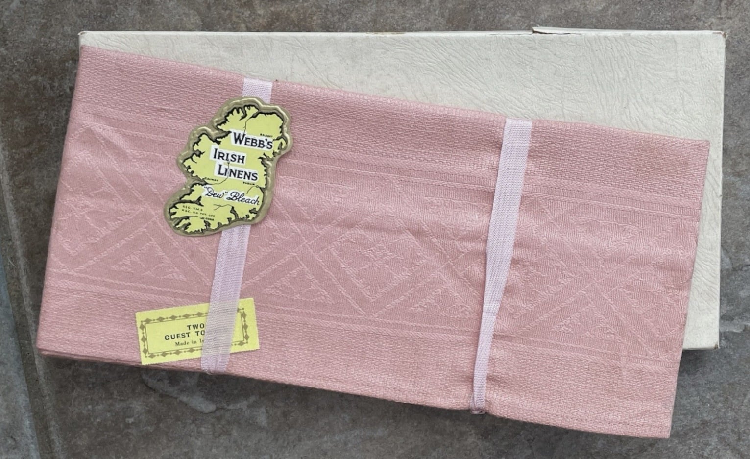 I bought a few more vintage linen towels, £11.52 spent, an extravagance. I was fascinated by the hairstyles and the clothes and aprons of the women who made the pink guest towels. They were a Christmas gift to Mr and Mrs Wilson from H. Cowlishaw, a card with a kind message was tucked in the back.