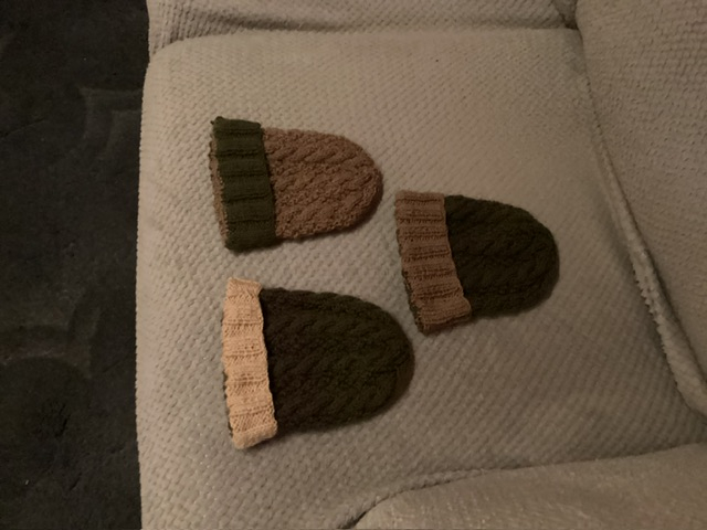 Sunday: So much for coming back shortly 😬 I managed to finish off the hat & cast on another one. See pic of 3 hats