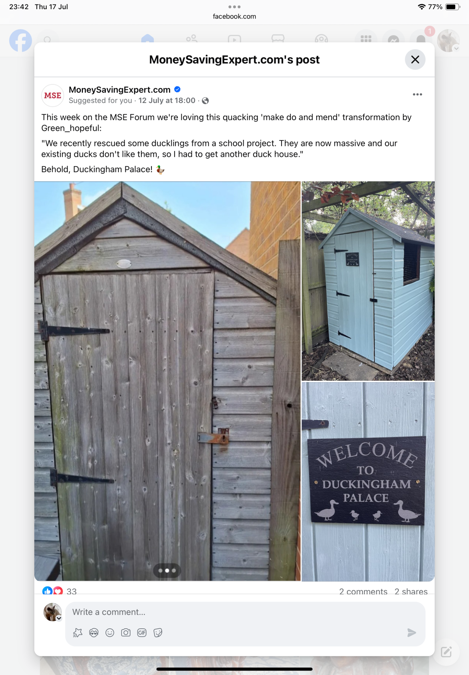 It featured on the MSE facebook page.