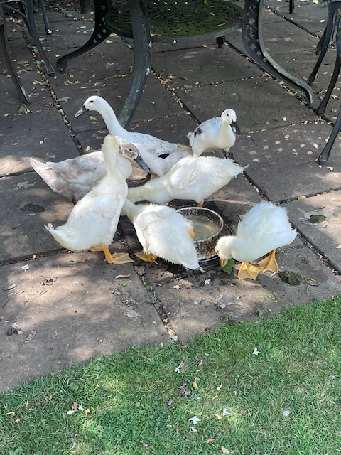 @Liverpool_Anne we have 7. Three beautiful Indian runner ducks who are good girls but a bit nervous. And four very naughty Pekins. We got the Pekins because my son’s school did one of those hatching projects. He rang me because the school were going to send the ducklings back to the farm to be killed. Turns out they are three girls and a very funny but naughty drake. He runs between my legs as i walk and zigzags in front of me trying to trip me up. He also nips my legs if he sees skin. The nips really hurt and bruise for months. He is totally tame though so i just pick him up and carry him if he gets too naughty. The photo is when the Pekins were still ducklings. The runners won’t share a house with them so i had to build them a new shed. I upcycled a shed from marketplace.