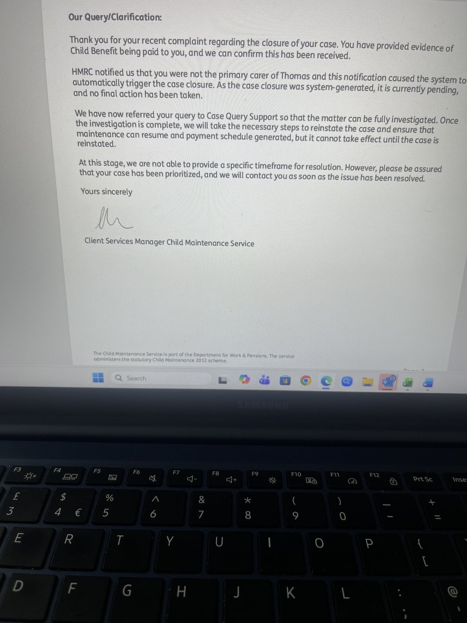 I have completed the mandatory reconsideration and they have concluded again that I’m not the parent with the main day today care for my son, unreal, I’ve uploaded as much evidence as possible and yet they still come to this conclusion. I’ve written to my MP and she then contacted the CMS, I then receive the attached, the HMRC apparently told them this? Not sure why, I rang the CMS as the next letter through again said they are closing my account as I’m no longer the parent with the main day to day care for my child, my MP has again spoken to them, the CMS have just told me on the phone that they will refer it back to my case worker and that it’s due to an ‘indicator’ on my account with the child benefit office that needs to be taken off as it’s coming through that I no longer receive child benefit and altho u can prove I do they need to stop this ‘indicator’