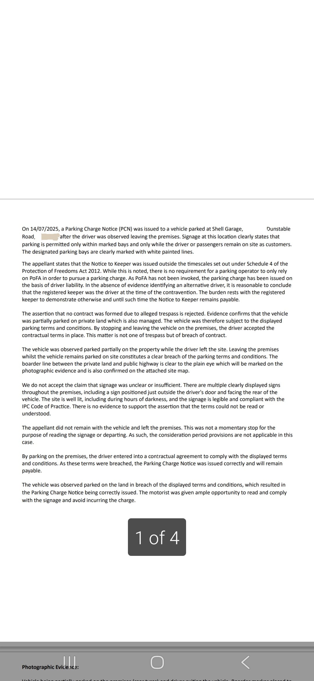 This charge will never be paid so the operator can flail around and waste their own time putting whatever spin on it that they like and the IAS can play its little game too. Bizarre pro-industry decisions against consumers 95% of the time, for years on end, demonstrate that the IAS is clearly not independent, fair nor even legally correct. All this is fruitless. See you in court.PRIVATE 'PCN'? DON'T PAY BUT DON'T IGNORE IT (except N.Ireland).