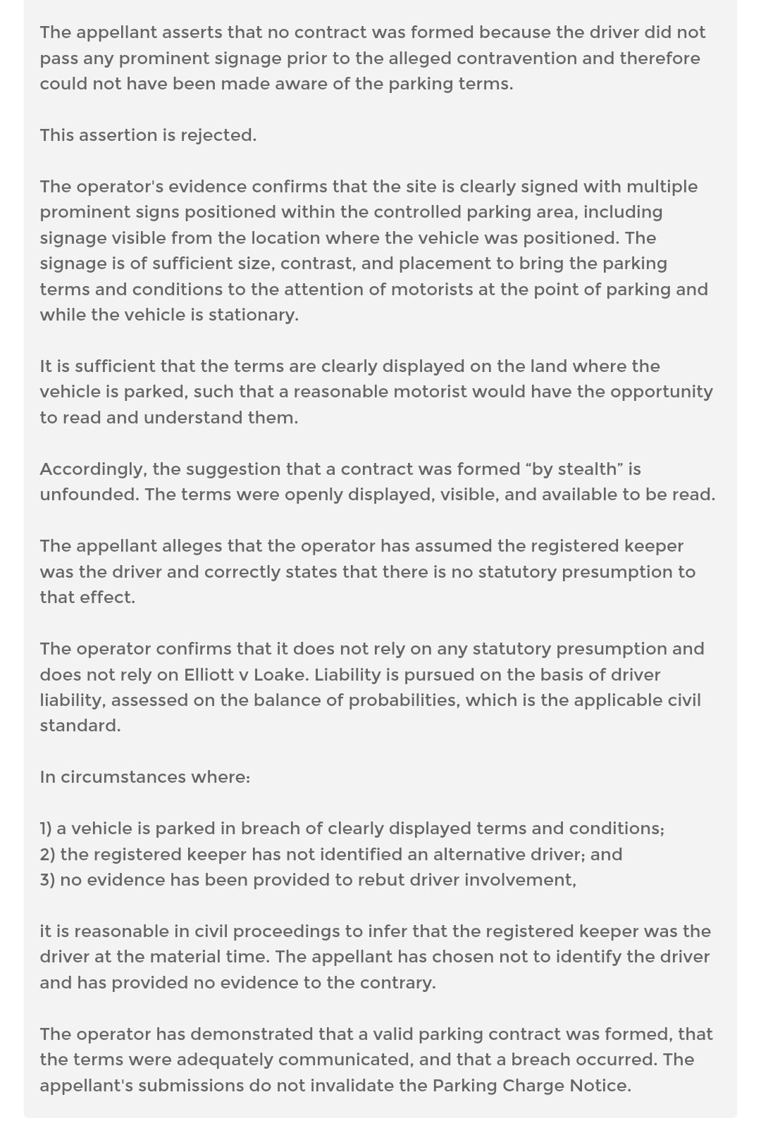 Secondly, there is no lawful presumption that a keeper was the driver on private land and the IAS can play their usual sad game of pretending that Elliott v Loake applies, but we all know it doesn't and that the IAS is futile for consumers and about to be replaced by a competent, impartial appeals service.