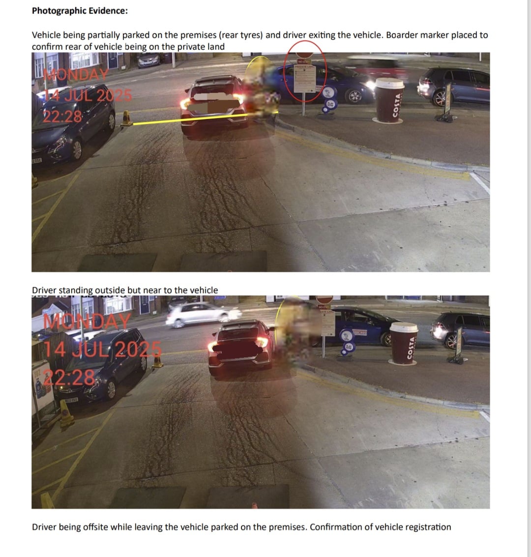 Paragraph 9(4) requires delivery within 14 days. Having missed this mandatory deadline, the operator cannot lawfully hold the Keeper liable.2. No Contract Formed (Trespass) The vehicle was on a public footpath, not a parking bay. Any minor encroachment of the wheels onto the site boundary is trespass, not a breach of contract. A contractual fee cannot be charged where no parking offer was accepted.3. IPC Code Violations• Signage: Terms regarding "leaving the premises" were not prominently displayed at the point of stop, failing the IPC Code of Practice for clear signage.• Consideration Period: The vehicle was stopped only momentarily. No consideration period was granted to read signs and depart, meaning no contract was formed.
