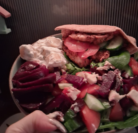 I made some potato salad with couple f them poatoes, 1 tbsp greek ff yoghut, 1 tbsp light mayo, cheese is not hexa but i am saying it is 🤣, left from Christmas and needs eating