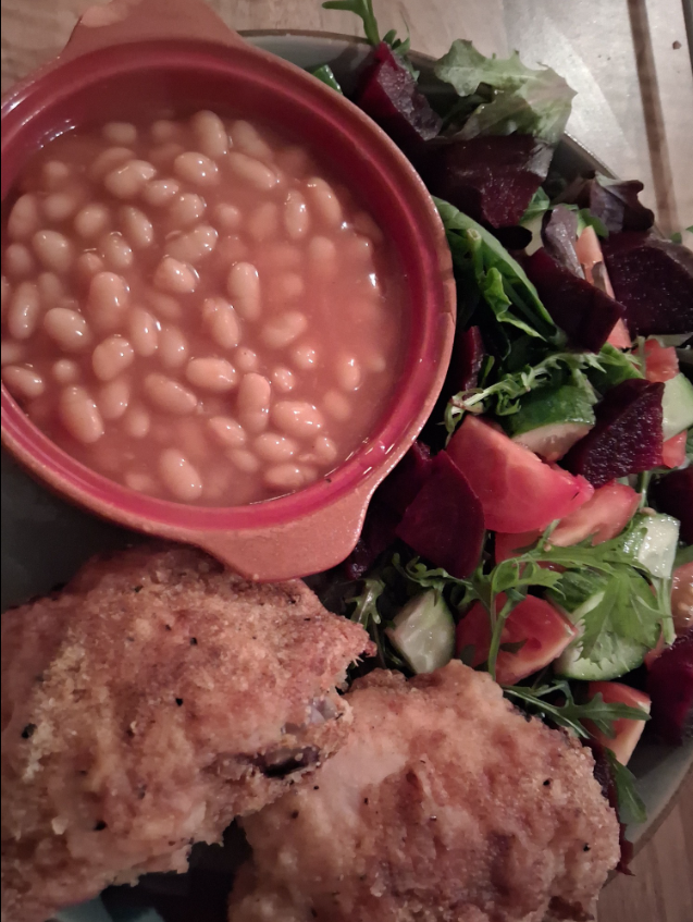 Fake kfc , salad and beans