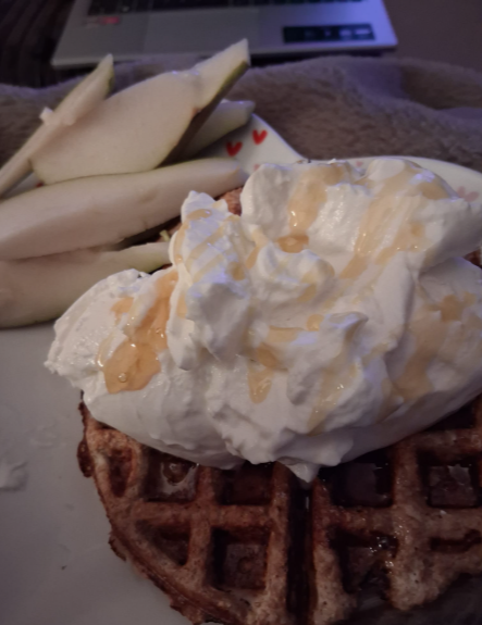 Pudding 3.5 syns, i did make a waffle ๐คฃ complete sp dayย waffle, made with wheatbran, ice cream made with ff greek yoghurt, pear and 1 syn sauce