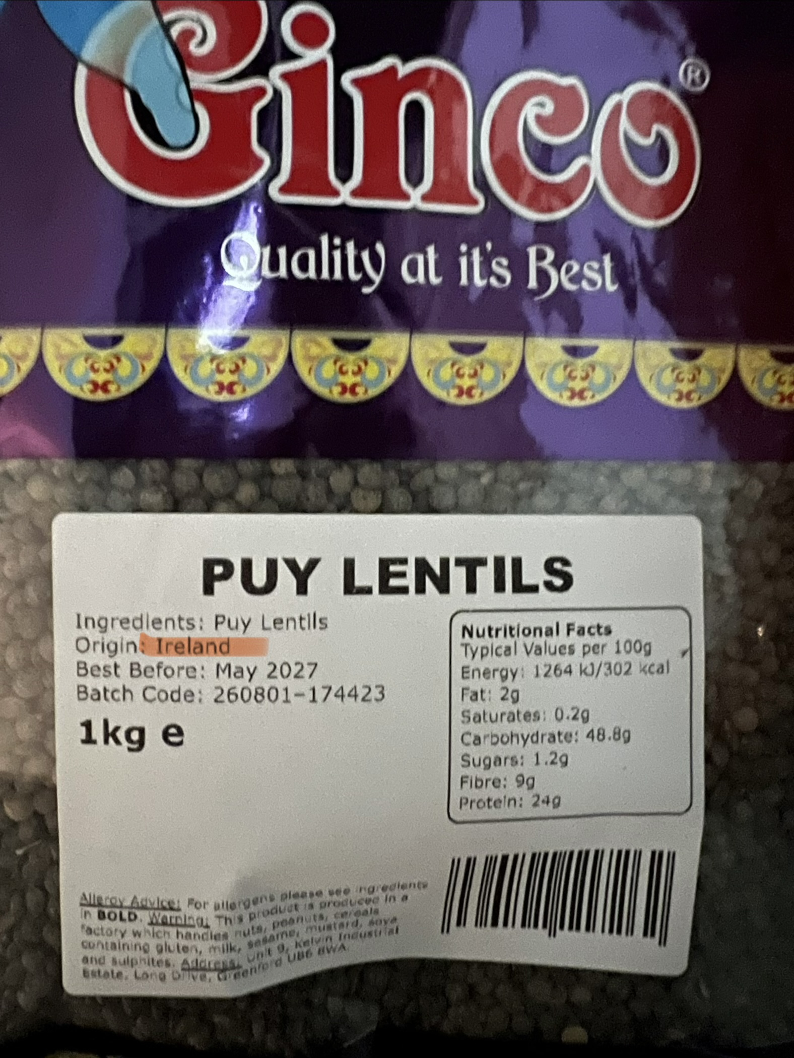 Are those COUNTERFEIT puy lentils?Edit: it says the country of origin is Ireland on their website, too!N. Hampshire, he/him. Octopus Intelligent Go elec & Tracker gas / Vodafone BB / iD mobile. Ripple Kirk Hill Coop member.Ofgem cap table, Ofgem cap explainer. Economy 7 cap explainer. Gas vs E7 vs peak elec heating costs, Best kettle!