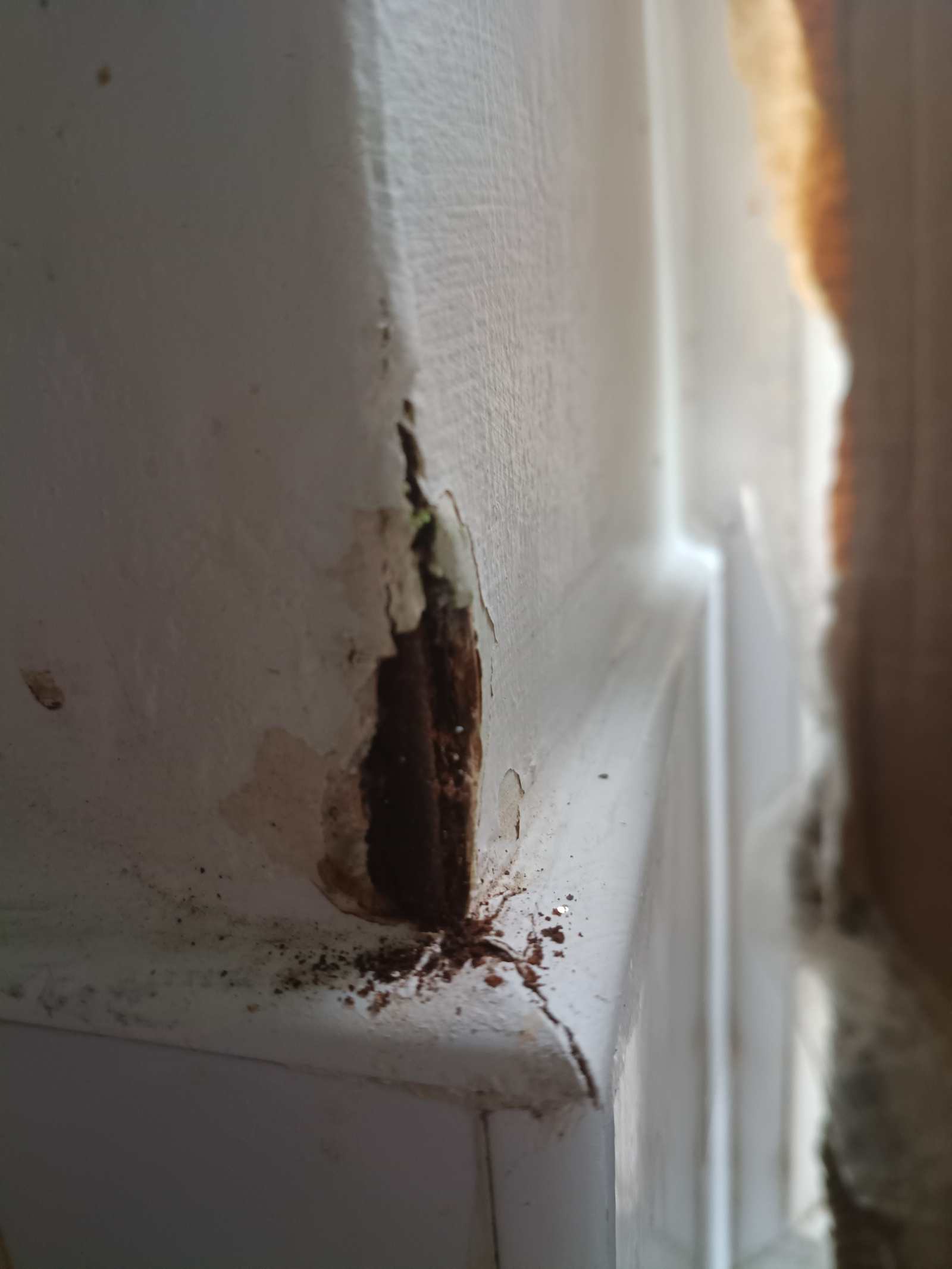 Also forgot to ask I'm at the house now and just saw this on one of the window walls for the kitchen it's only one little corner but I think it's gone through to brick so I just put filler here or like the sealant for the door then filler?