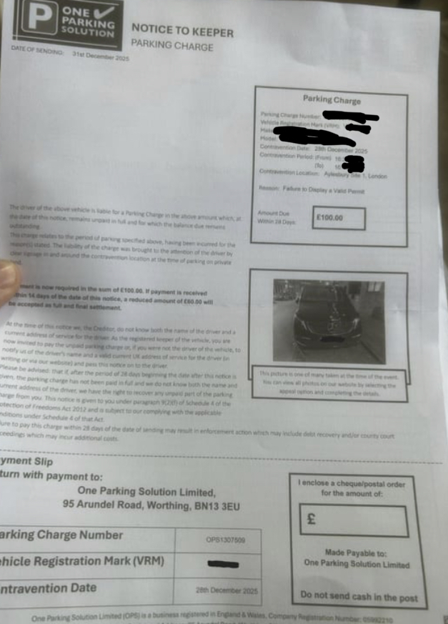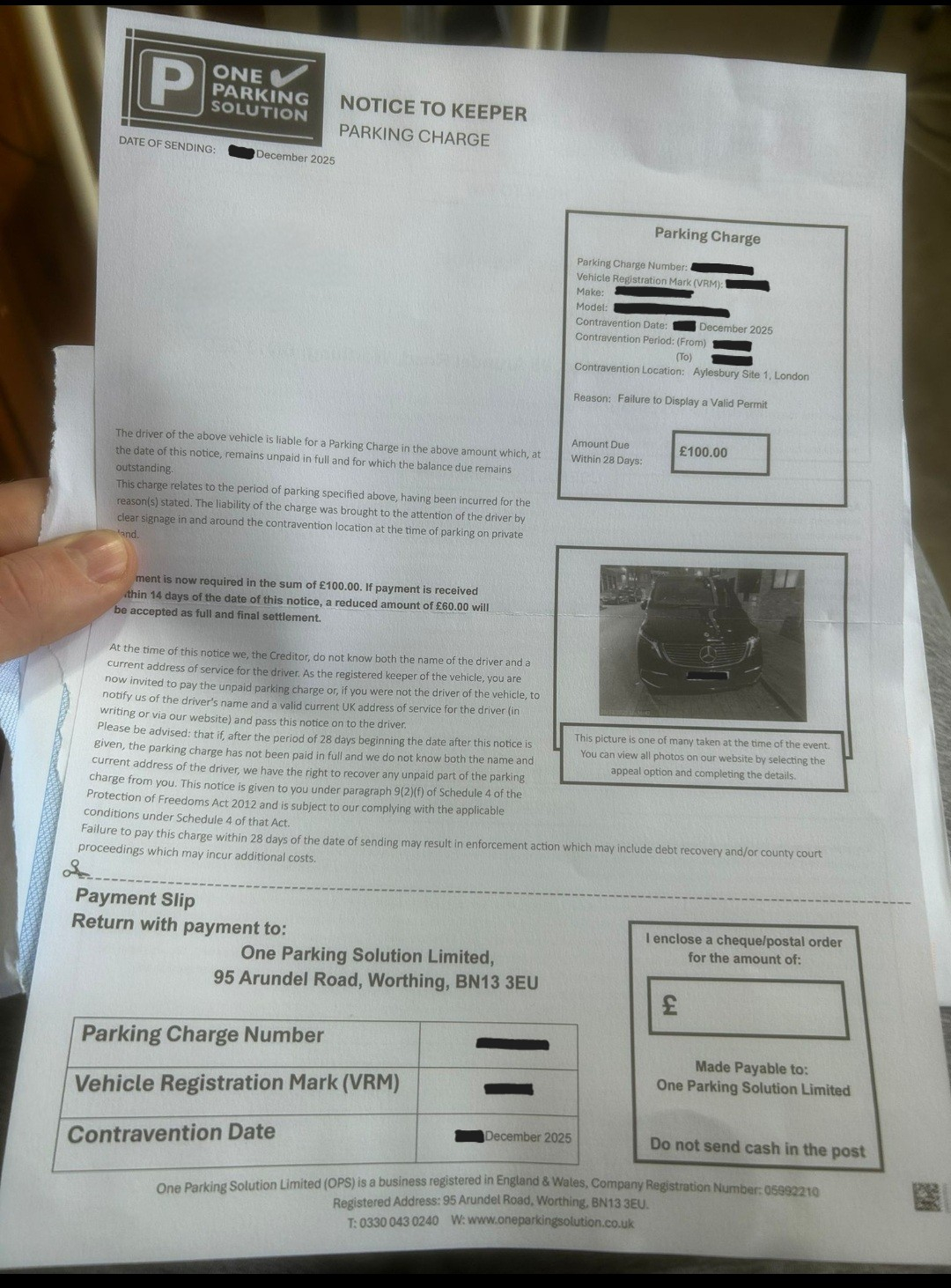 HI all just looking for some advice on a private parking PCN from One Solution Parking on the 28/12/25.My father in law lives on a road with private parking with limited numbered bays for some residents, he applied for one before but none was available.