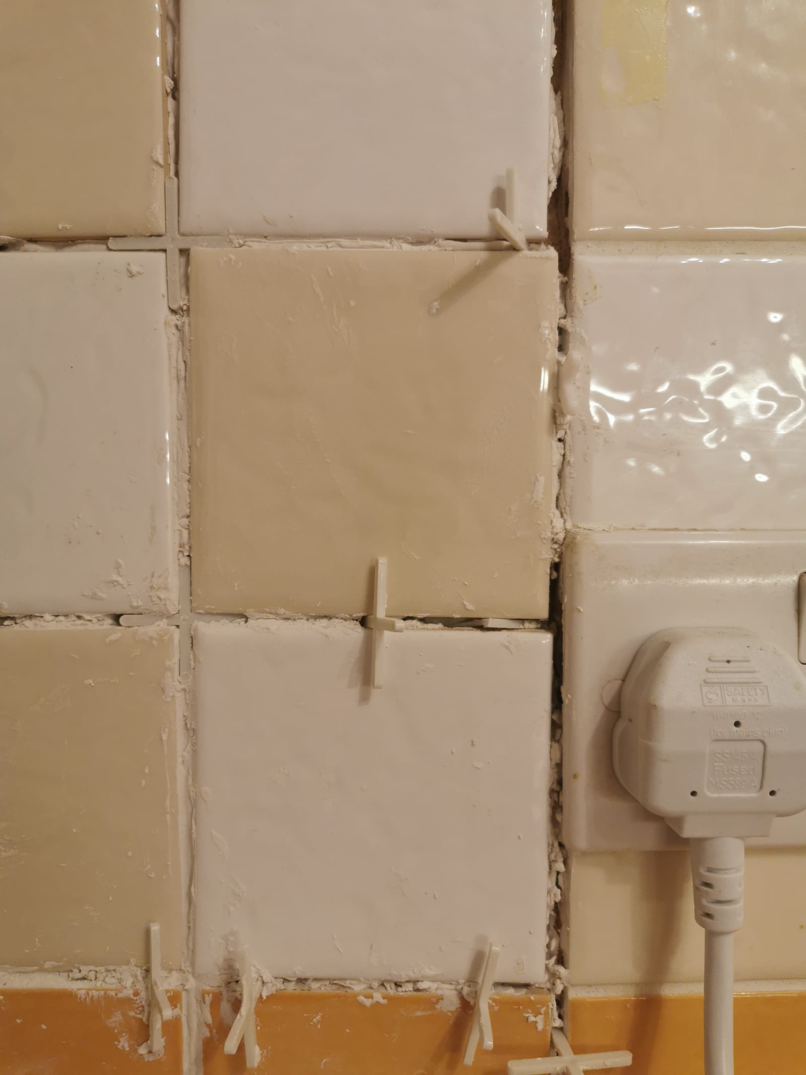 However, uneven grout gaps and squint tiles are quite simply unforgivable - end of. There are many DIY tilers on here - I'm one - who would not allow themselves to carry out such a shoddy job. There is no excuse - it looks like the work of a beginner.