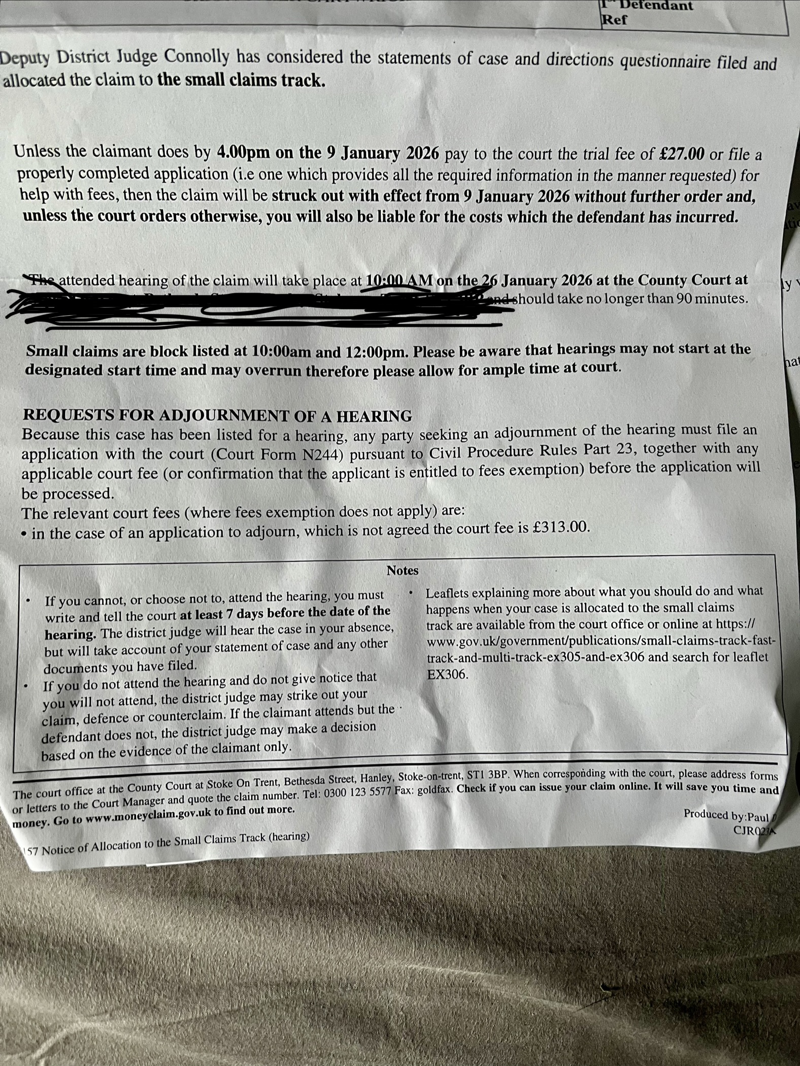 If not, we hope you didn't fail to file & serve your WS & evidence bundle this week? As ordered on page 2 of that order.potterer82 said:There’s no email no,I’ll ring the court thanks,and I’m hoping they failed to pay the fee lol 🤞