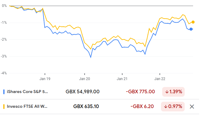 I'm not sure why my action is attracting so much scrutiny and debate, it's simple enough. I sold my US tracker, because I no longer wanted to hold a US only index tracker. I bought the HSBC AW fund because I believed that the dilution effect would better be lower risk, I'm now trying to undertstand if the move achieved the results I expected and how it relates to the bottom line, during the recent Trump/Greenland blip, and subsequent recovery period. If there was no measurable benefit from switching, I made a mistake and shouldn't have done so. If there was, I want to understand it. None of this is about getting lucky, nor is it about making a comparison of two like funds.masonic said:The reason I suggested comparing equivalent funds that share a valuation point is that it’s the only way to get an intellectually honest result using fund prices.If you only want to compare the L&G US Index and the HSBC All-World, you have to look past the wrapper of the fund and at the indices they actually track. Both of these funds are simply tracking an index that is valued more than once per day and can be compared like for like.The difference you saw isn't a real performance difference in the underlying assets, it's a reporting lag. Because the L&G fund prices 3 hours later, it captured part of relevant global markets' movement that the HSBC fund missed. To see if your US dilution actually worked in the short term, you have to look at the indices themselves over a synchronised period. If you compare the FTSE USA Index against the FTSE All-World Index for that same period, you will see the true difference. That removes the timing mirage created by the fund providers' different valuation points. Until you synchronise the timeframes by looking at the indices, you aren't comparing the performance of your move you’re just comparing performance over different periods. It is like trying to demonstrate your back garden is cooler than your front garden by checking the thermometer in the front at midday and at the back at 3pm.Whereas if you are just trying to demonstrate you got lucky (or otherwise) by effectively being out of the market during the switch, then indeed that is part and parcel of switching between funds. But that would concern relative performance on T-1 day and T-2 days.No one is scrutinising the logic of your move. You have a rational argument for further reducing US exposure.The debate is simply about the measurement that led you to conclude it was "definitely a good move" based on performance data. During the Greenland blip, the US markets dropped 2% on Tuesday. Because the L&G fund prices at 3:00 PM, it captured some of that US sell-off a day earlier than the HSBC fund, which was still valued at prices from noon.You’ve been provided with two alternative ways to measure the relative performance of All-World vs. USA that don't rely on these stale prices. Either compare two equivalent funds with the same valuation time or compare the underlying indices. If you are unwilling to look beyond the flawed measure of daily snapshots at different times, which even you have acknowledged introduces a large discrepancy, then you are deliberately choosing for the true short term result of your move to remain a mystery to you. You are essentially looking at two clocks set three hours apart and wishing there was some way you could make them strike midnight at the same time.I'd put it to you that the jury is still out on whether you'll get a benefit, and will be for quite some time (this is the first method suggested: synchronised daily priced fund pair vs continuously priced ETF pair, the latter more up to date)...