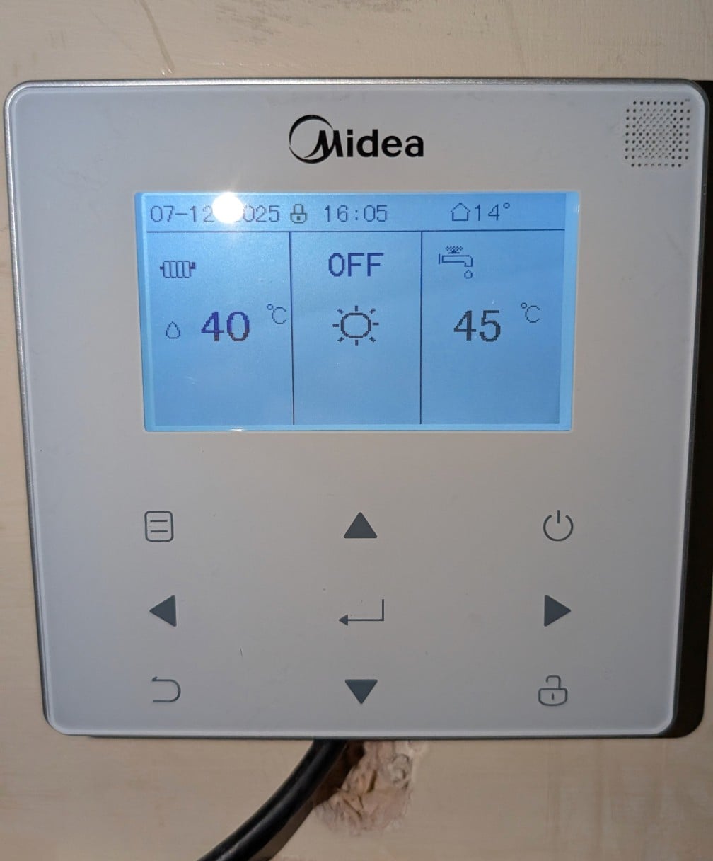 I'm also reluctant to fiddle with the Midea controller for fear of buggering up a system I already know nothing about during a particularly cold winter - and in case I invalidate the warranties. But I am intrigued by your self-taught method of programming yours and once I've had confirmation from the installers about where/when/if I have the right thermostatic controllers I'd definitely like to learn more about how it works and maximise its efficiency.0