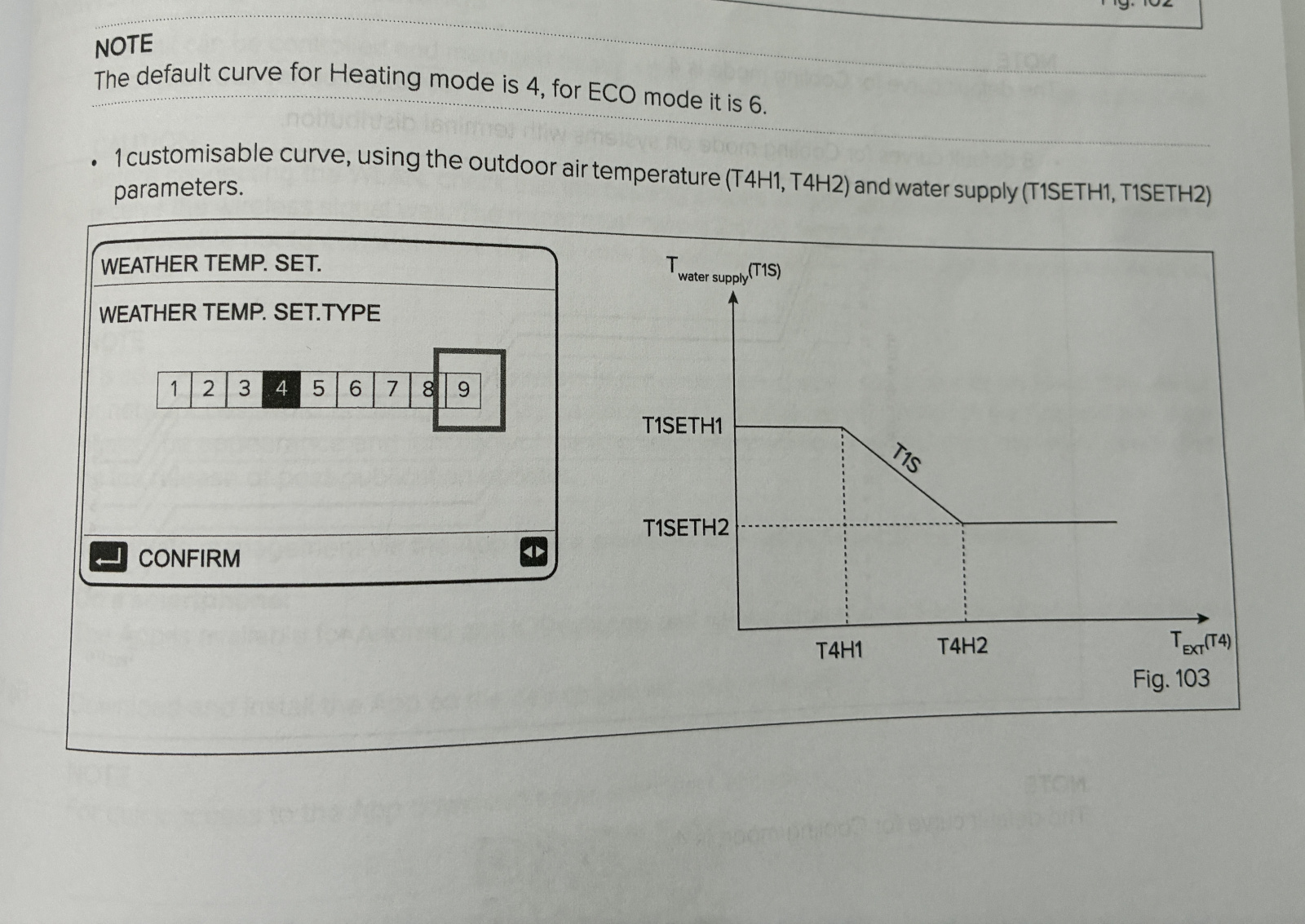 T1setH1 is the flow temperature at outdoor temp T4H1. So…mine runs at 49C at -4 outside.Likewise T1setH2 is the flow temperature at outdoor temp T4H2.