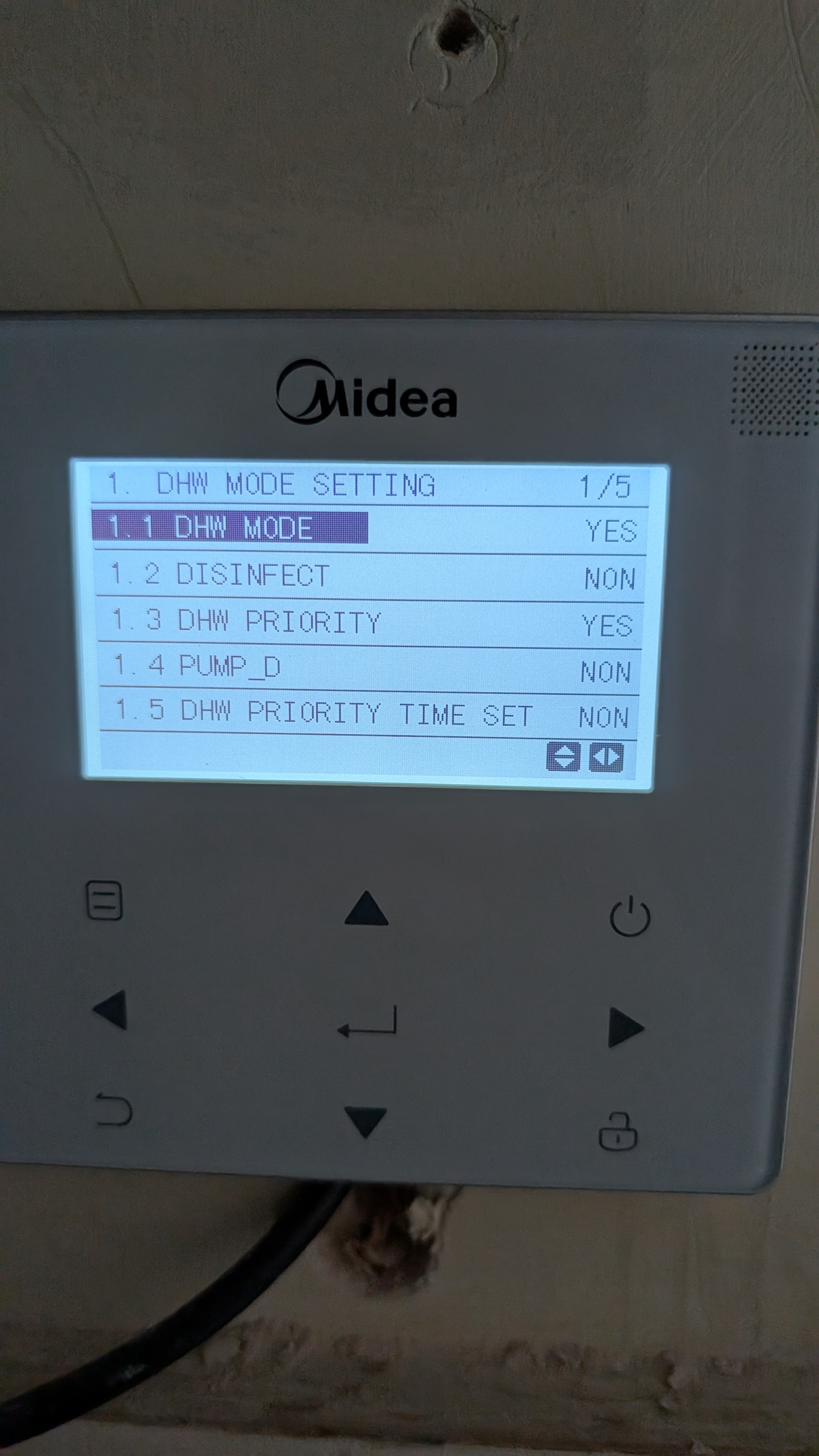 The DHW screen on my Midea controller looks like this: