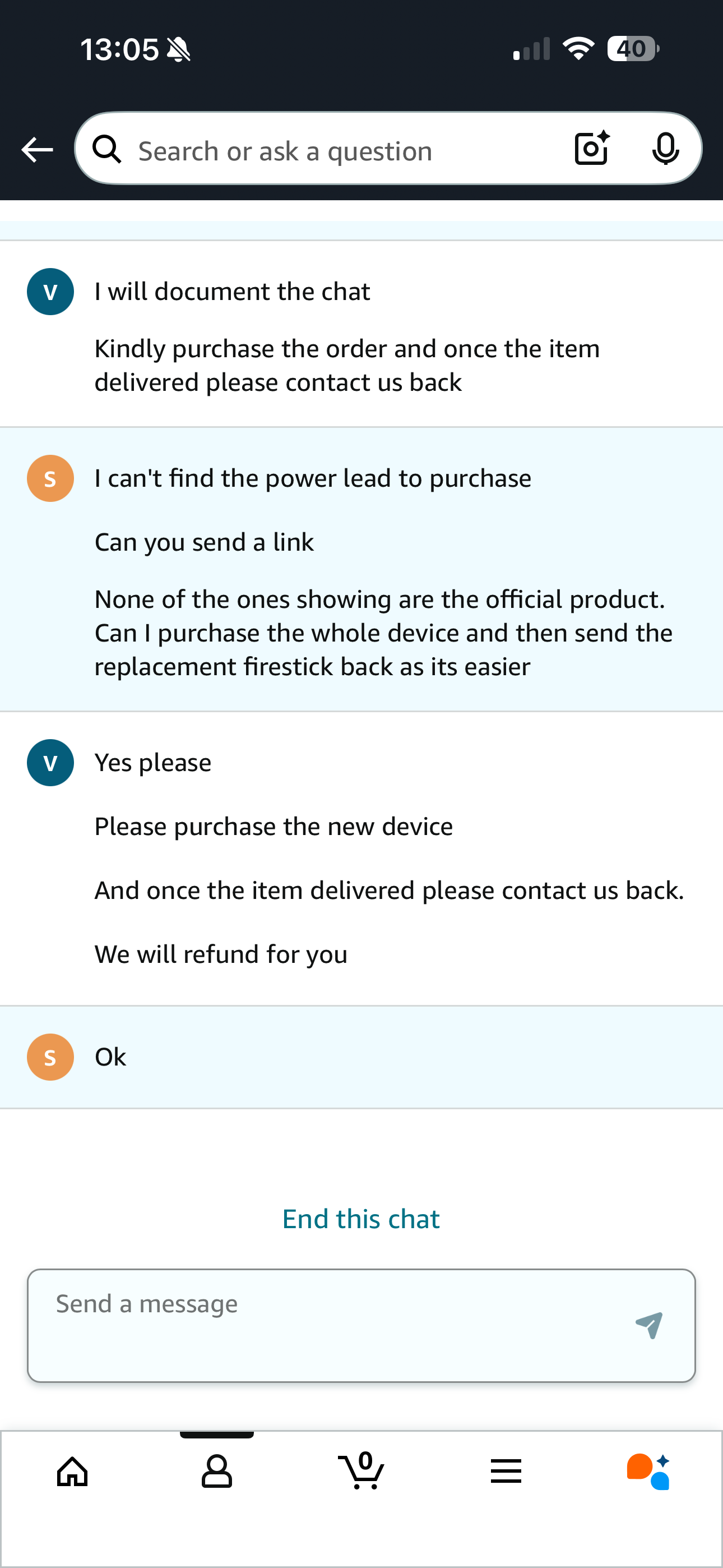 Not only that, but they will close your account as well as potentially any other accounts at your address and blacklist you. I would strongly recommend against the chargeback for two reasons, the first being a complete loss of access to Amazon products and services, the second being that the bank will refuse it as you have the goods, regardless of the other messages you have.Stamarie said:Please bear with me this could be a long post but I will try to break it down.I purchased a firestick in March 2025 from amazon which stopped working a couple of weeks ago. I contacted amazon over live chat and they told me to return it along with the leads and remote and they would send a replacement.I returned the whole firestick and accessories as requested but when the replacement arrived it was just a refurbished firestick with no leads or remote so I contacted amazon again.I spoke on live chat and the advisor told me to order a whole new firestick and when it arrived to contact them for a full refund.When I received I contacted them again by live chat and they told me they had processed the refund back to my card.2 days later the item wasn't showing as refunded on my account and I hadn't received an email confirmation of the refund so I contacted them again.After being passed around 6 different people they told me I had been given misinformation by the advisor that told me to buy a new one and I wouldn't be receiving a refund! The only way to get a refund would be to return the item. I said I was willing to do this if they provided a power lead and remote for the replacement they sent or let me keep the accessories from the one I needed to return but they have refused either.I have screenshots of the chats telling me to purchase a new device,and send the accessories with my return but they are not budging and won't help.I said I would have no choice but to ask my bank for a charge back but one of the managers I spoke to said if I do this they will mark the firestick as lost or stolen so it can't be used!