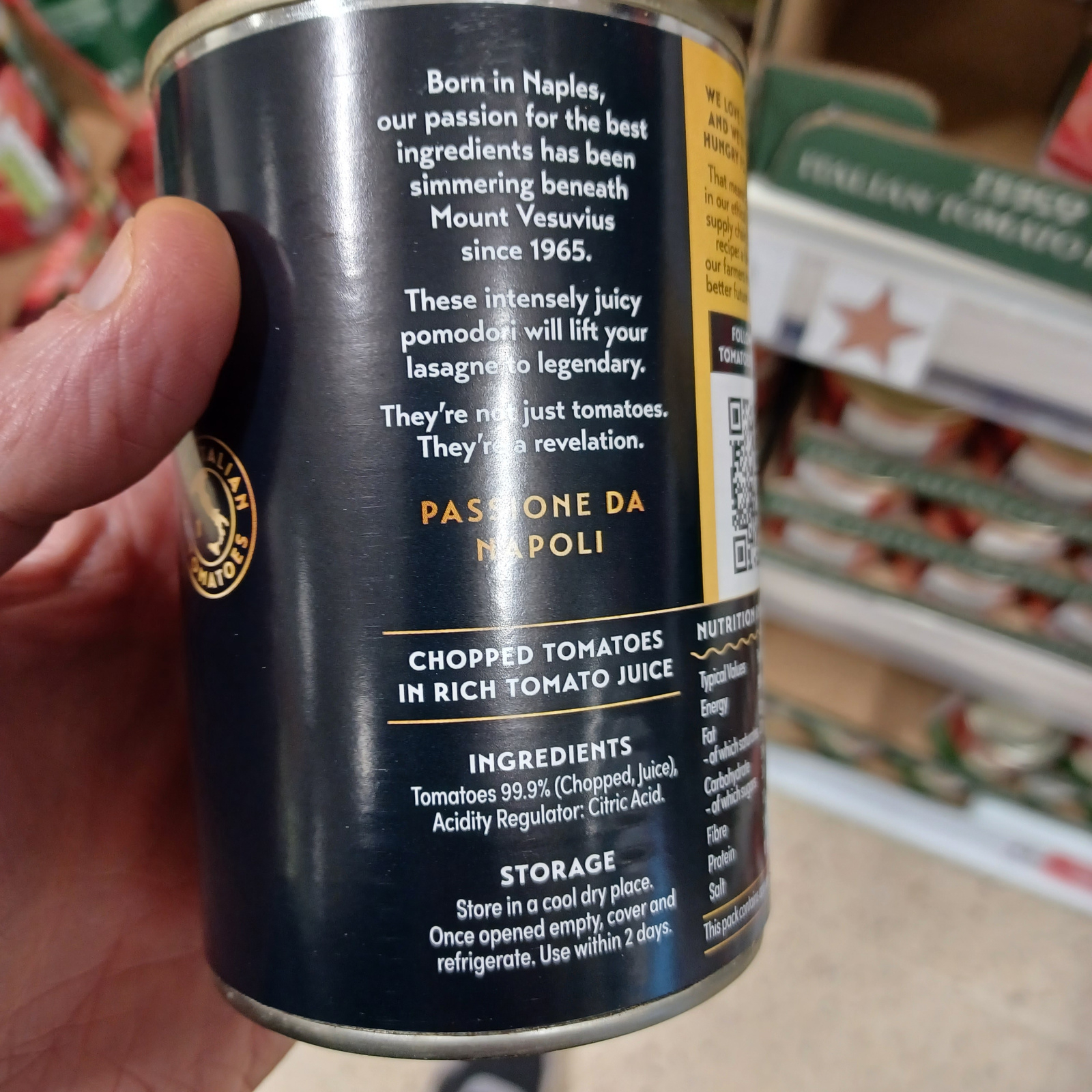 bluebottle11 said:You are probably right, though on Sainsburys website the ingredients for both individual cans and the 4 pack are the same, 99.9% (chopped and juice). Can't see ingredients listed on the Tesco site.https://www.tesco.com/groceries/en-GB/products/254299631