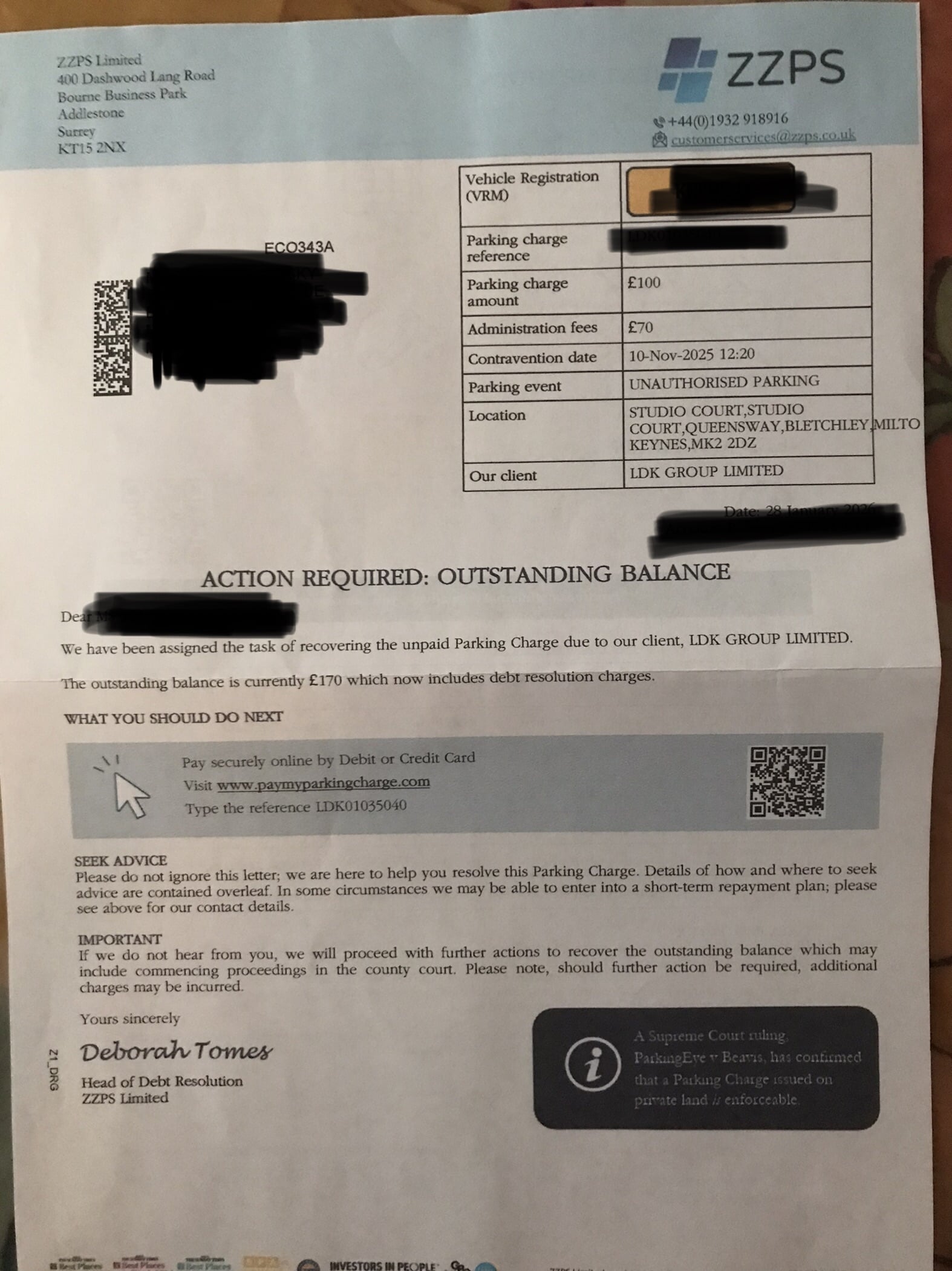 My advice was to come back only with a Claim Form if ever they try. We do not want to see £170 threatograms ever again, thanks! Spare us.