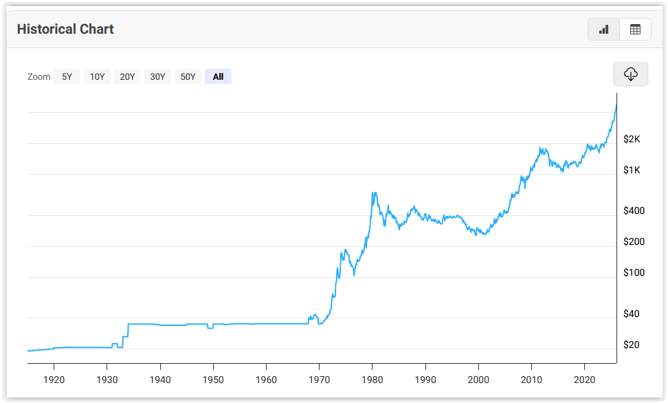 Those who bought gold in 1980 and needed to sell anytime before 2010 (30 years!) are most unlikely to think they made a good investment. Same for those who bought in 2010 and had to sell before 2020. Buying gold now, when it is at its highest ever price, might well mean a very long wait for any increase. On the other hand, the increase might continue, or the value might stay essentially flat, as it did for the 35 years from 1935 to 1970 - who knows.
