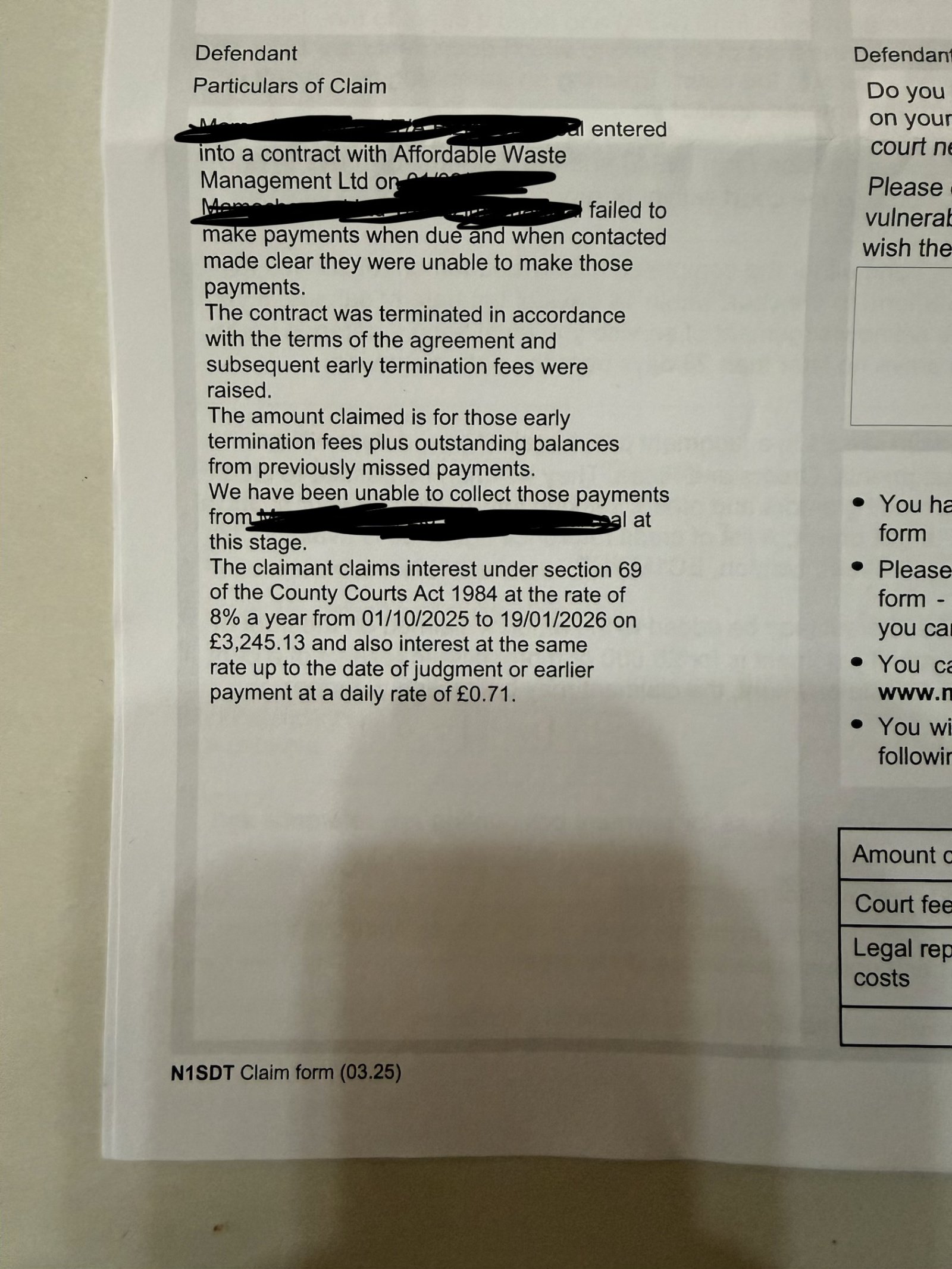 Now they have made a money claim with the courts because we obviously wont be paying for services we did not use.