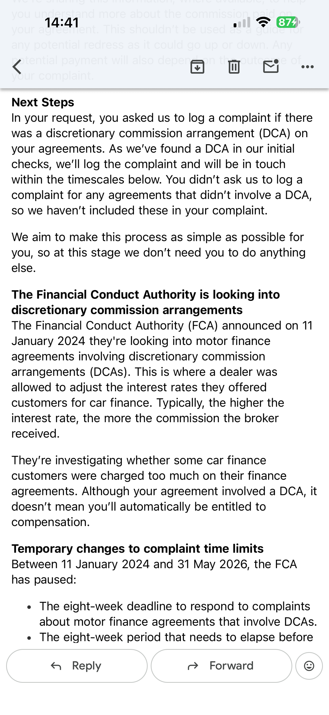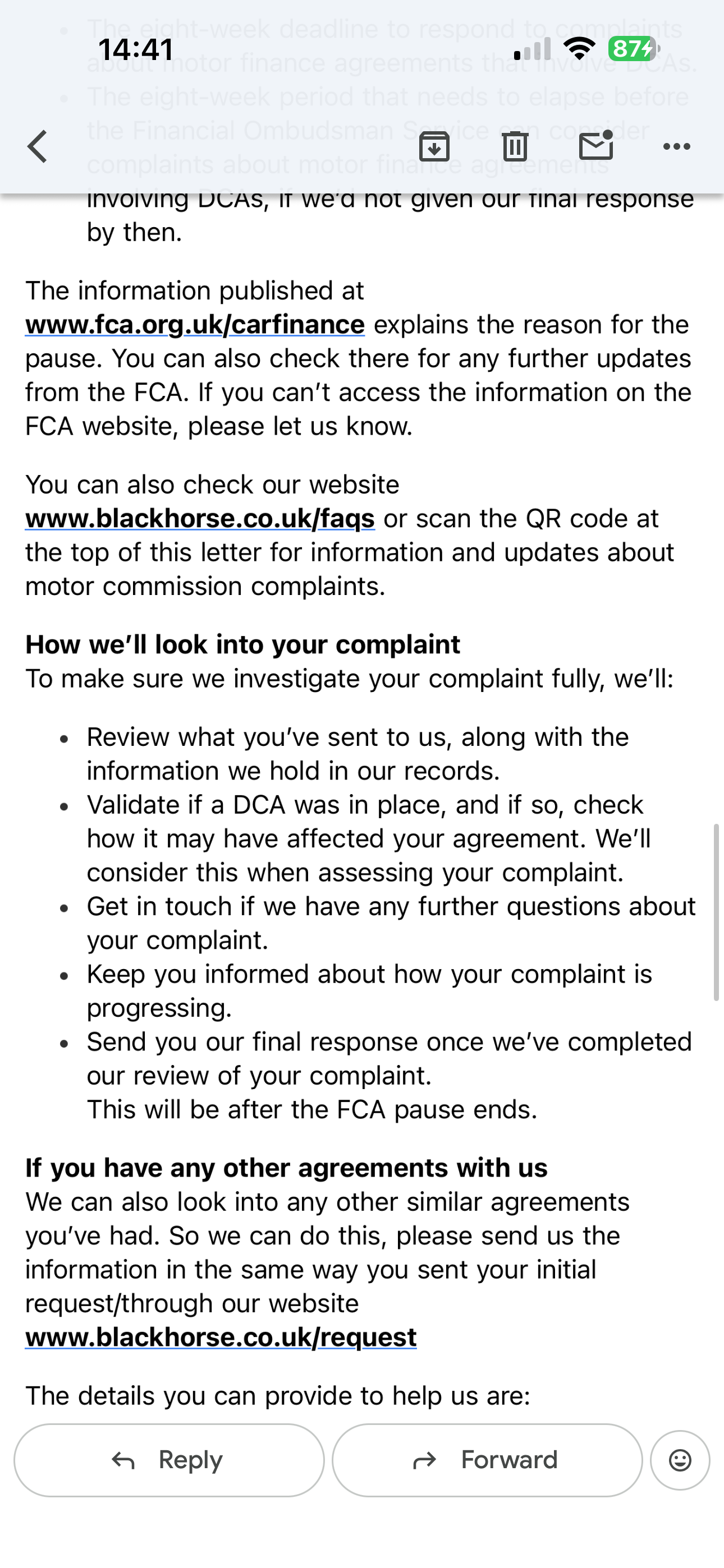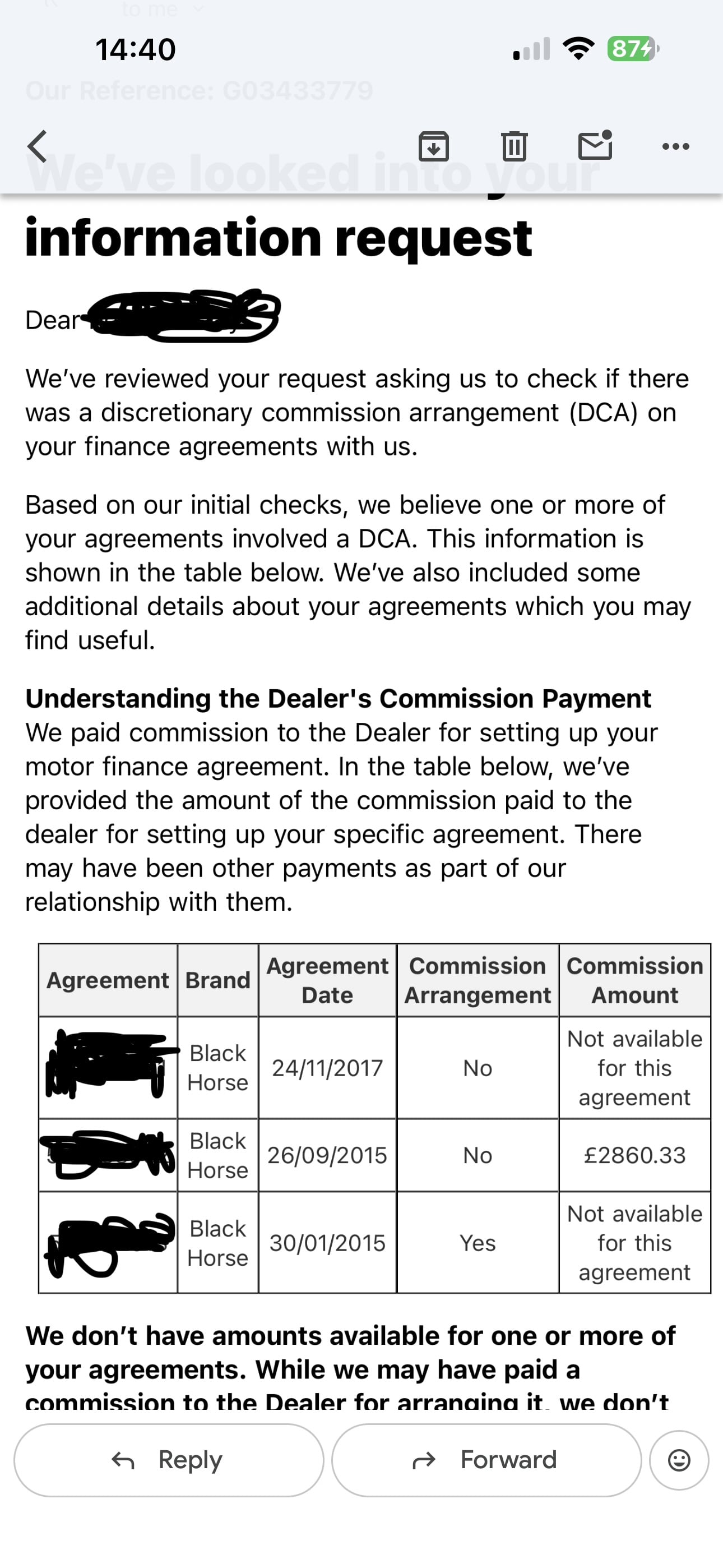 i am unsure but have had a response from Black horse to an information request on discretionary payments on Caravan finance I have had previously. I understand that as these are not part of the recent court cases and further FCA compensation scheme as they have NO engine.