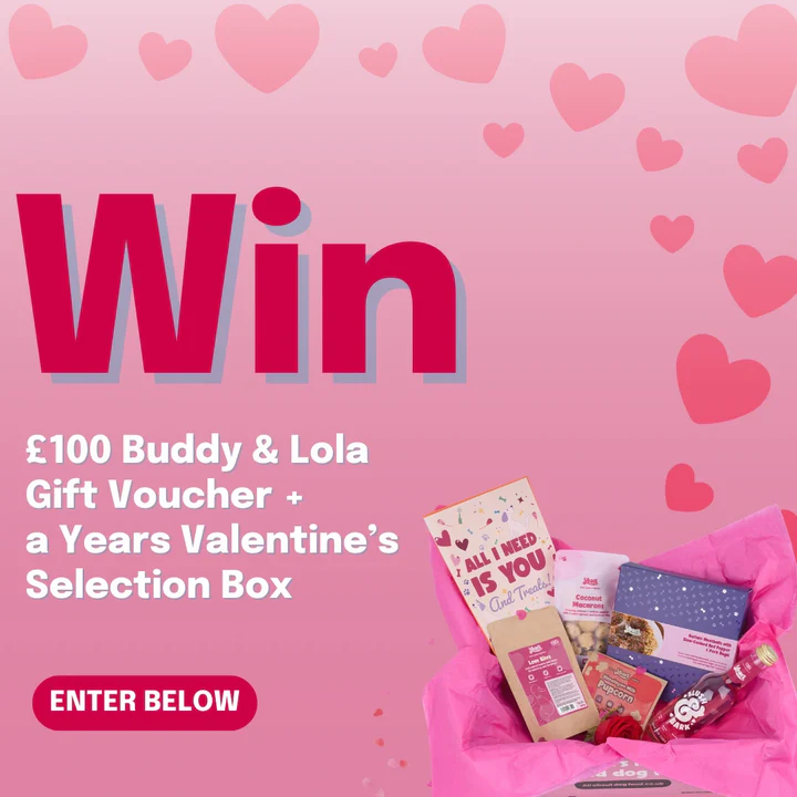 We are giving one lucky winner the chance to receive a Years Valentine’s Selection Box filled with premium dog treats plus a £100 Buddy & Lola gift card.
