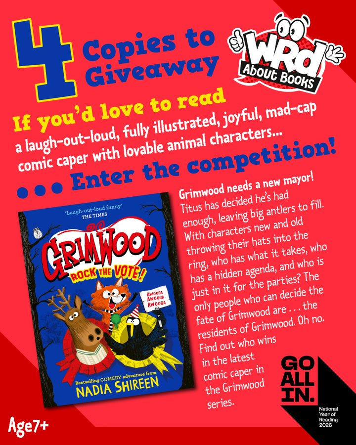 We have 4 BRILLIANTLY FUNNY copies of #GrimwoodRockTheVote! by #NadiaShireen to #WIN