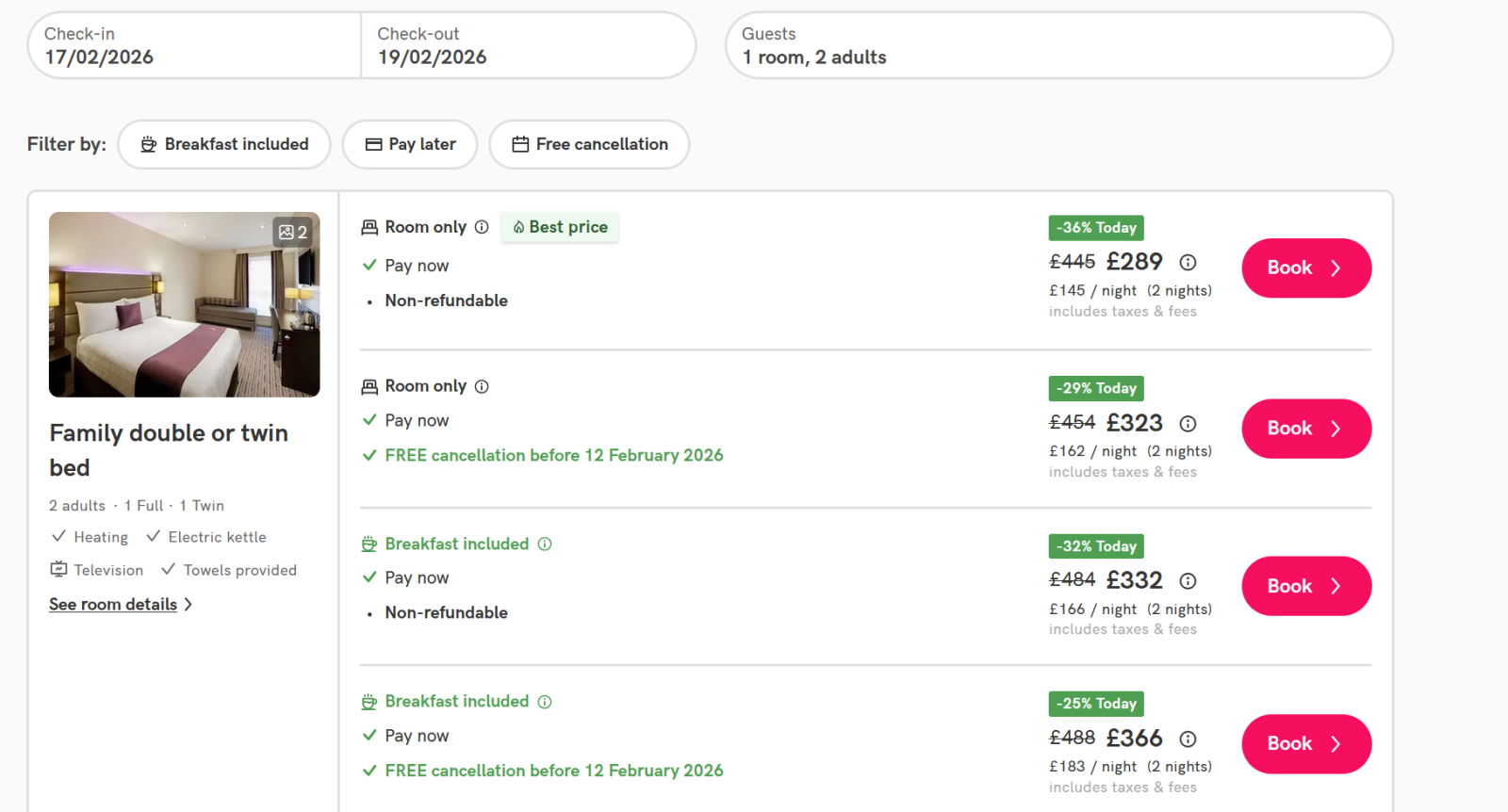 claiming38% discount)What price are you quoted from Premier Inn?
