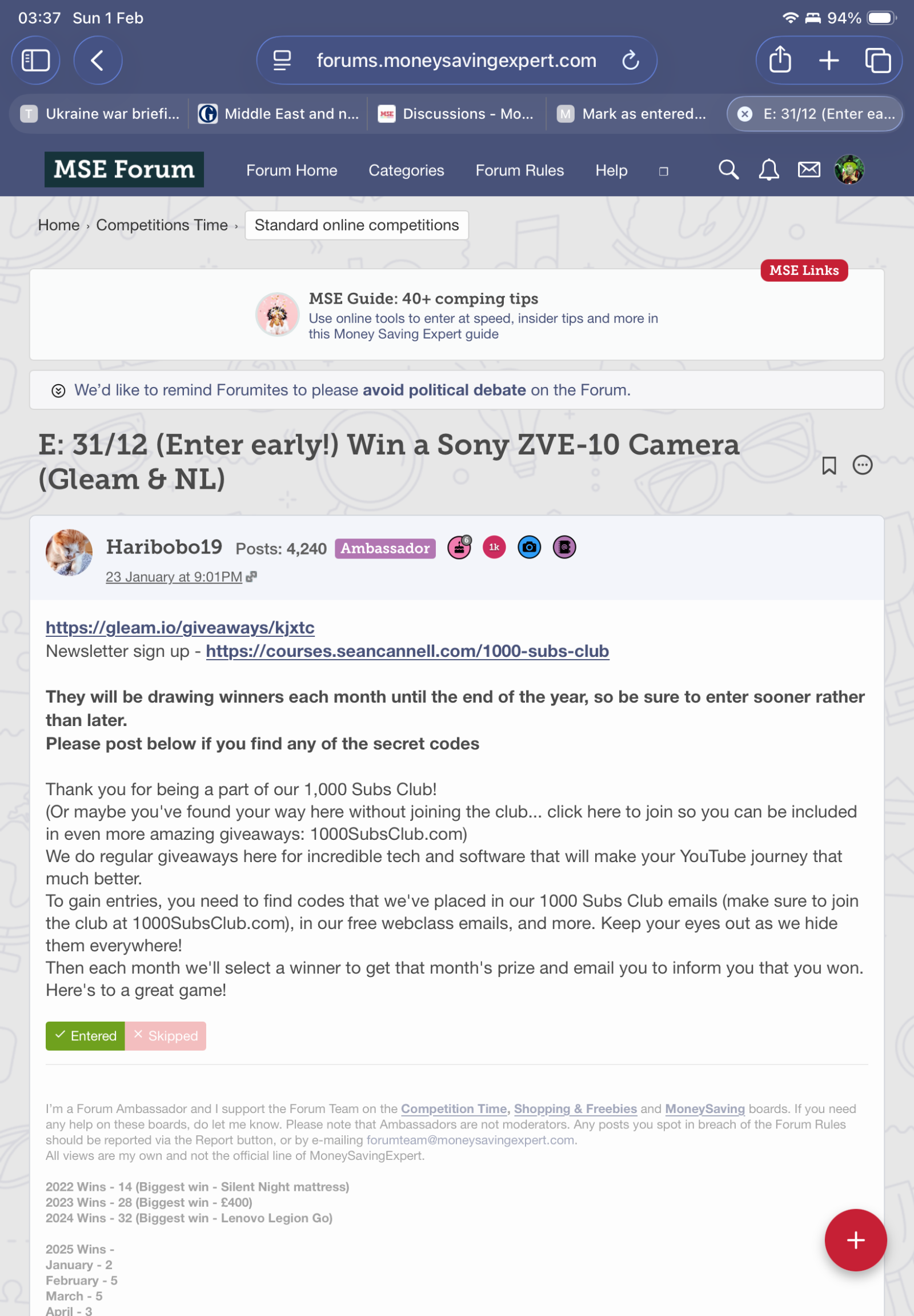 Sorry I haven't checked out the comp forum for a long time, always was my goto. I can't see where you can mark that you have entered the comp has that now gone or I am just not seeing it I am logged in. It is probably me but it all looks so different now