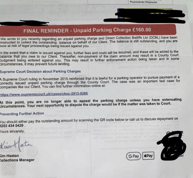 DCB Ltd letter vs disabled parking