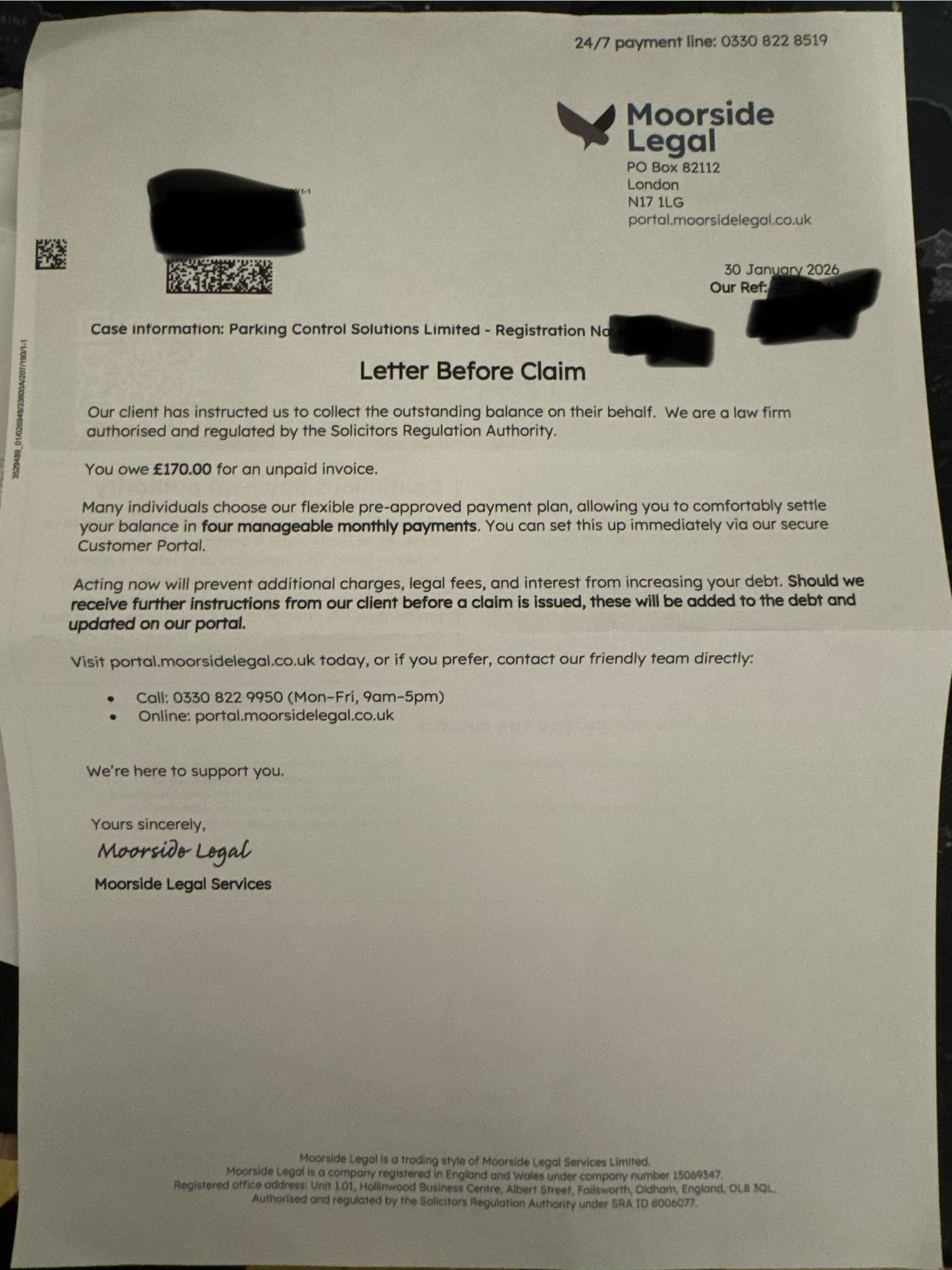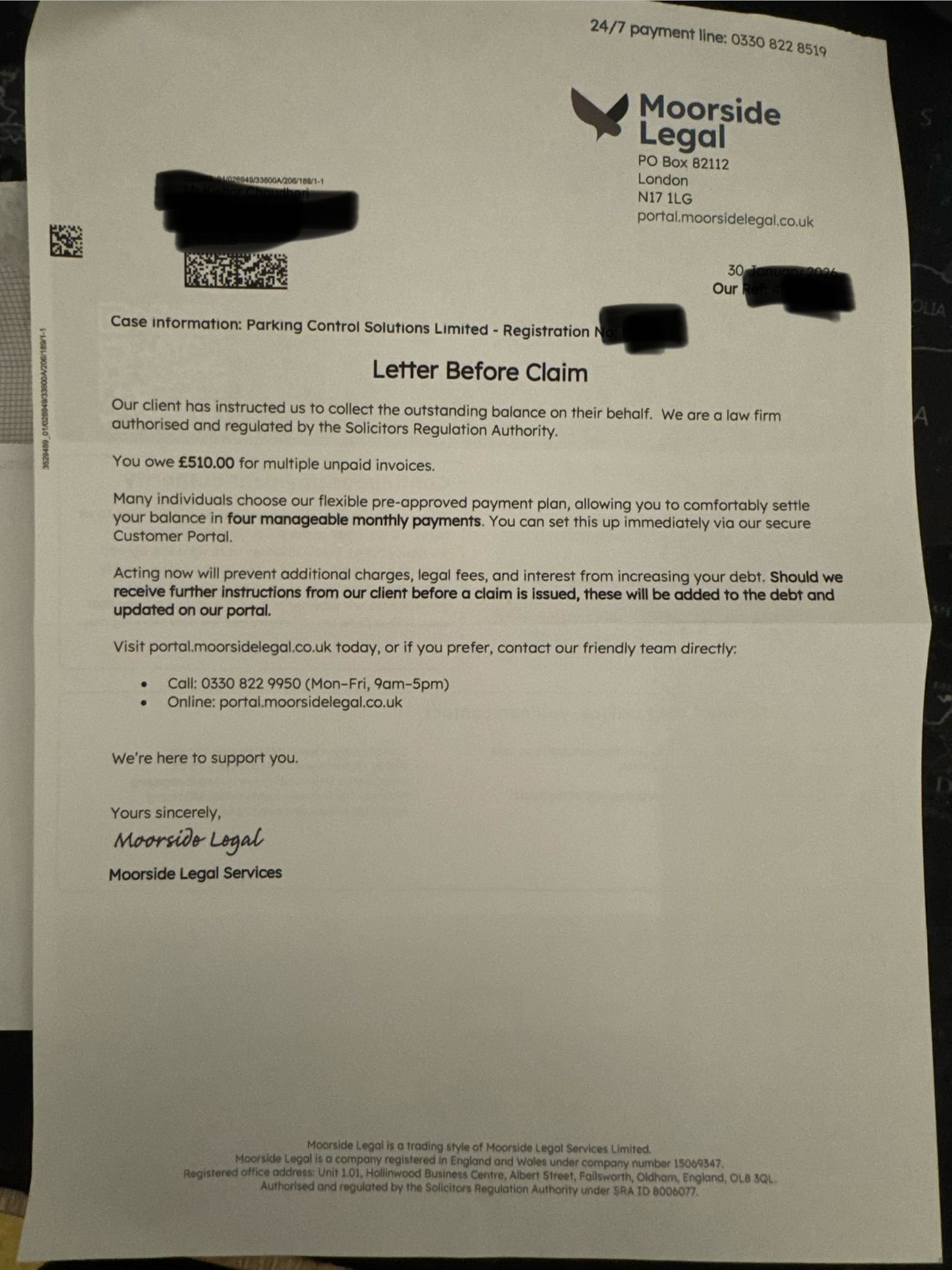 Parking Control Solutions LTD- Moorside Legal
