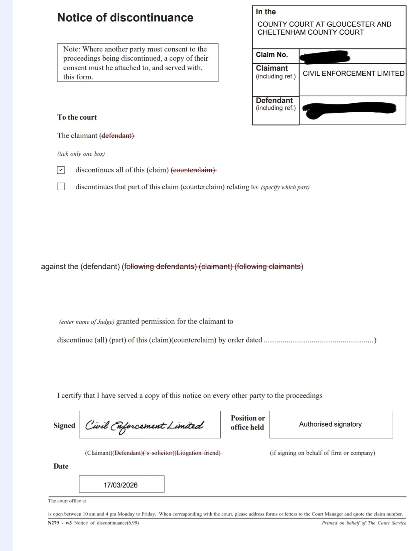 CIVIL ENFORCEMENT LIMITED (Claimant)
