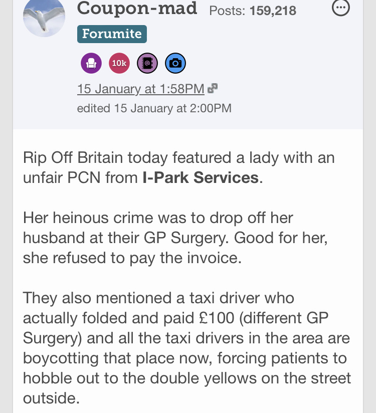 Are the practice not prepared to complain to IPark about you receiving this pcn?