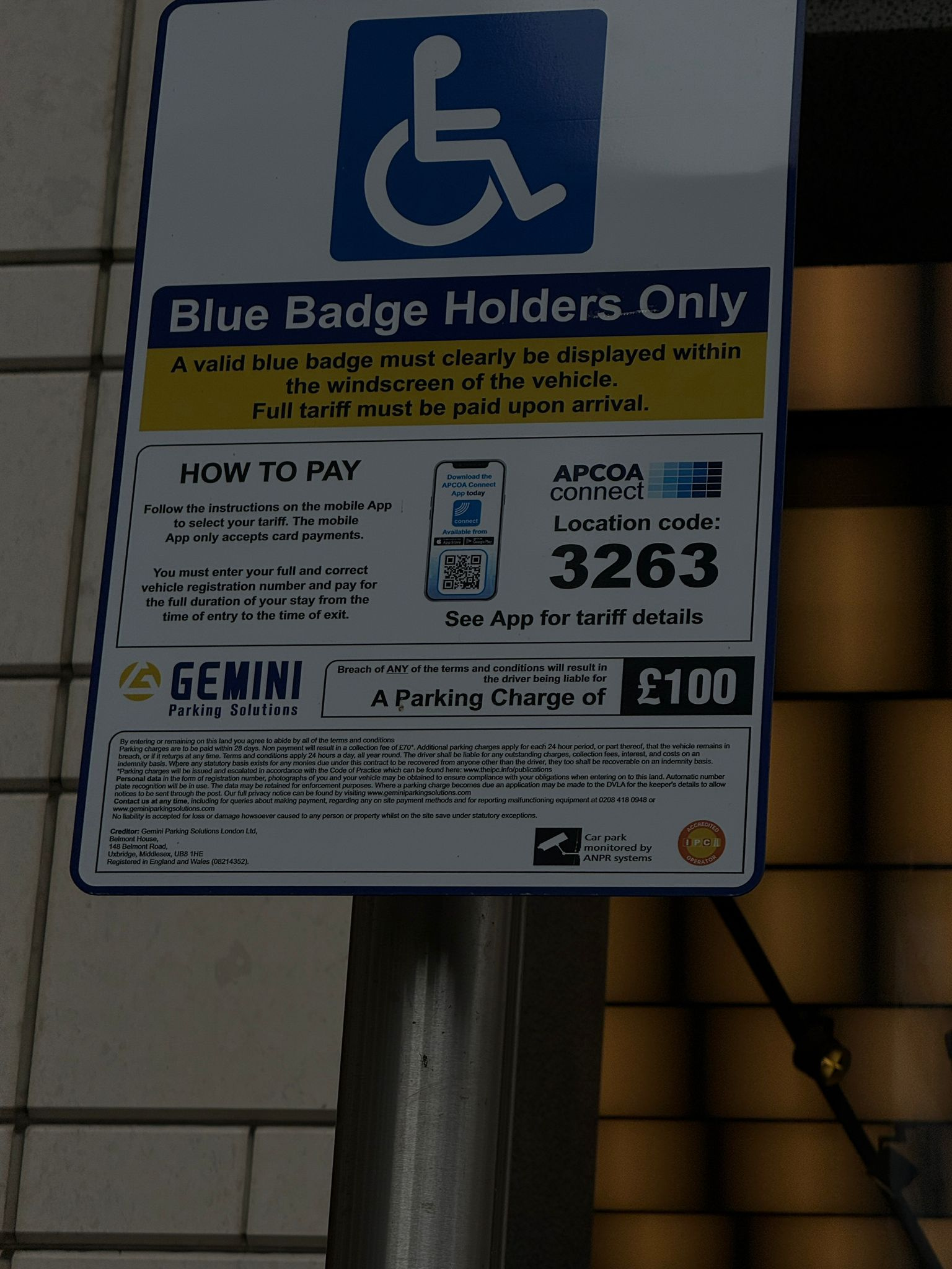 A significant alteration to established disabled parking terms would reasonably require clear, prominent and unambiguous communication to ensure visitors are properly informed before parking. It is concerning that a £100 charge has been issued where the transparency of such a change is unclear.