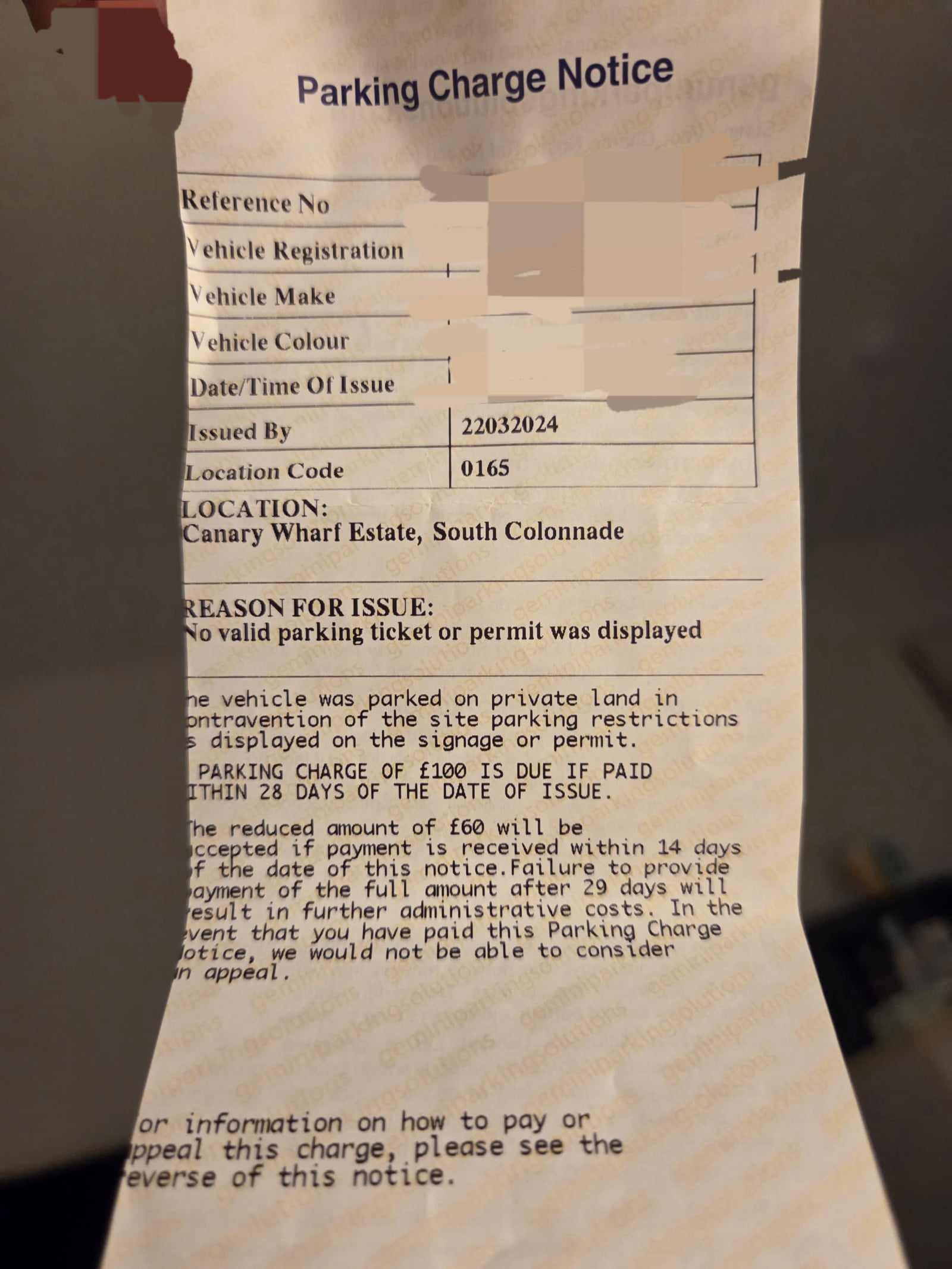Gemini Parking Solutions - Windscreen PCN - Canary Wharf