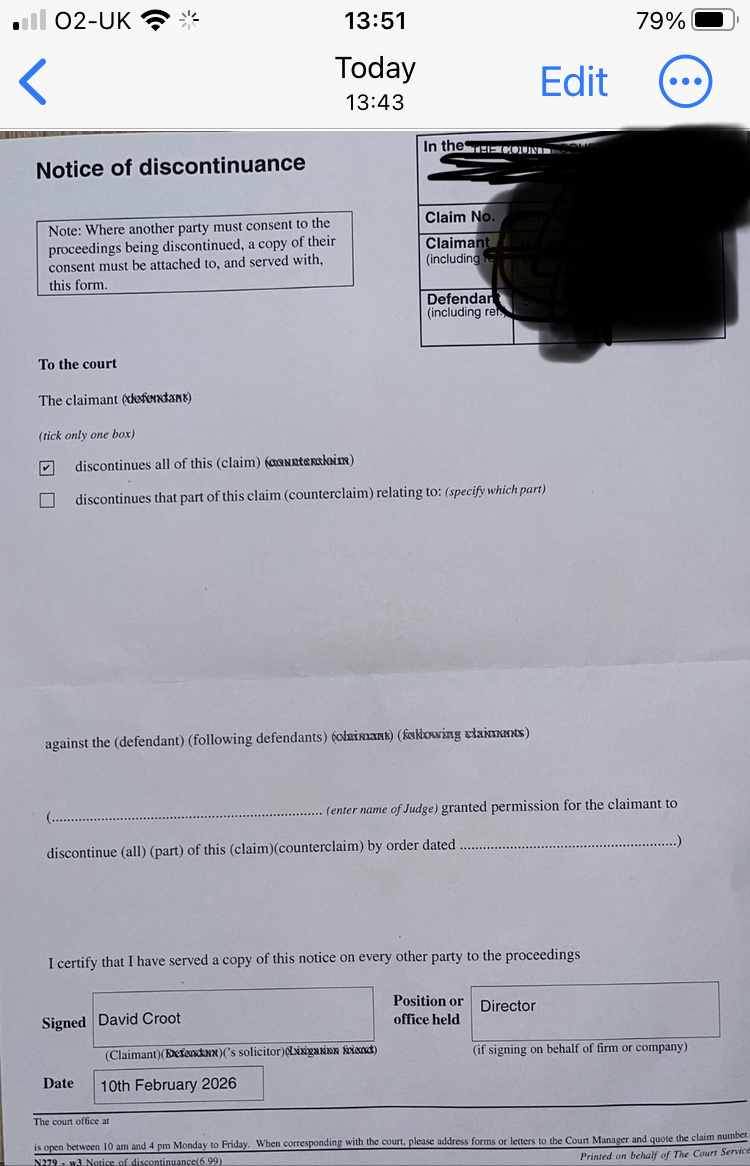 I’ve just received notice of discontinued claim by DCB Legal . My witness statement was due today, so if this is genuine letter from them, I no longer need to submit it do I? Hope I can upload the photos …